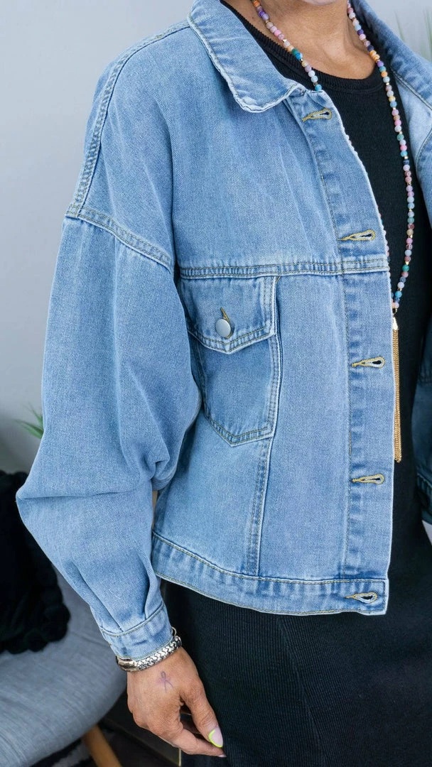 The cutest denim jacket of the year! We love the dolman sleeves on this jacket with pleating details. This jacket will get you by all season!
