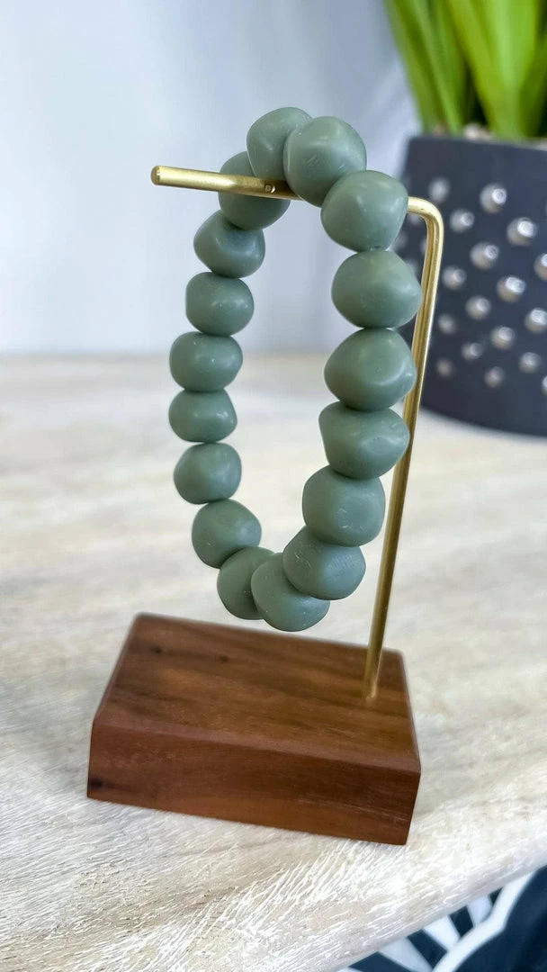 Make a statement with this colorful chunky beaded bracelet. This bracelet is made for the stylish woman on the go. With its stretchy band and chunky beads, it’s easy to wear and perfect for any occasion. Add some color to your outfit with this olive green bracelet.