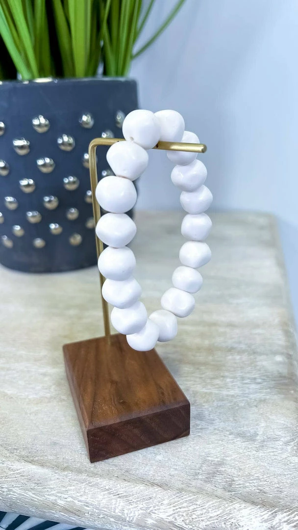 Make a statement with this colorful chunky beaded bracelet. This bracelet is made for the stylish woman on the go. With its stretchy band and chunky beads, it’s easy to wear and perfect for any occasion. Add some color to your outfit with thisΒ white bracelet.