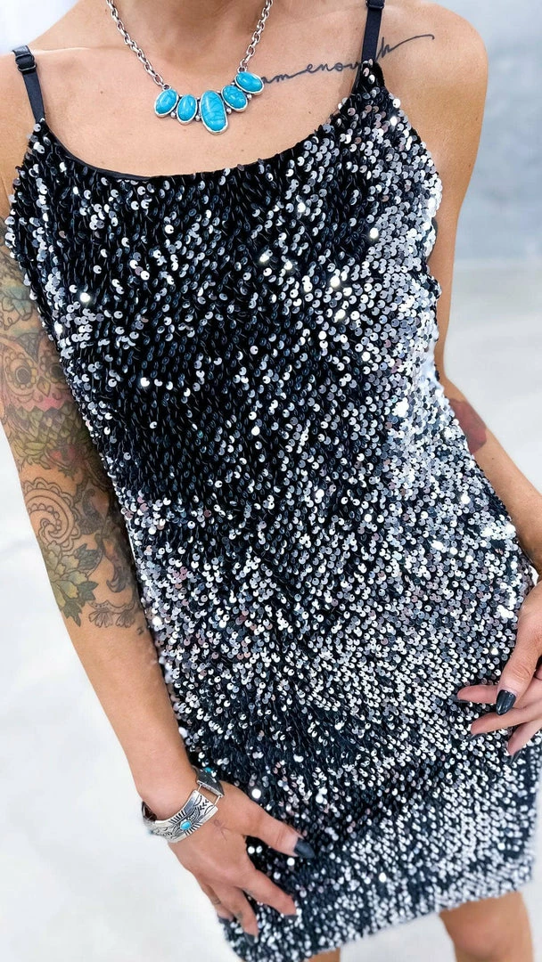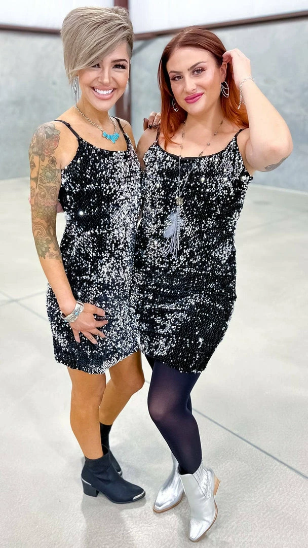 Bring the sparkle and shine wherever you go in this Blinded By The Lights Dress. Catching everyone’s attention is easy in this black sequin dress. The sequins add just the right amount of pizzazz to any outfit. Whether you’re going out for drinks with friends or heading to a party, thisΒ dress will have you looking fabulous. Shine on, girl.