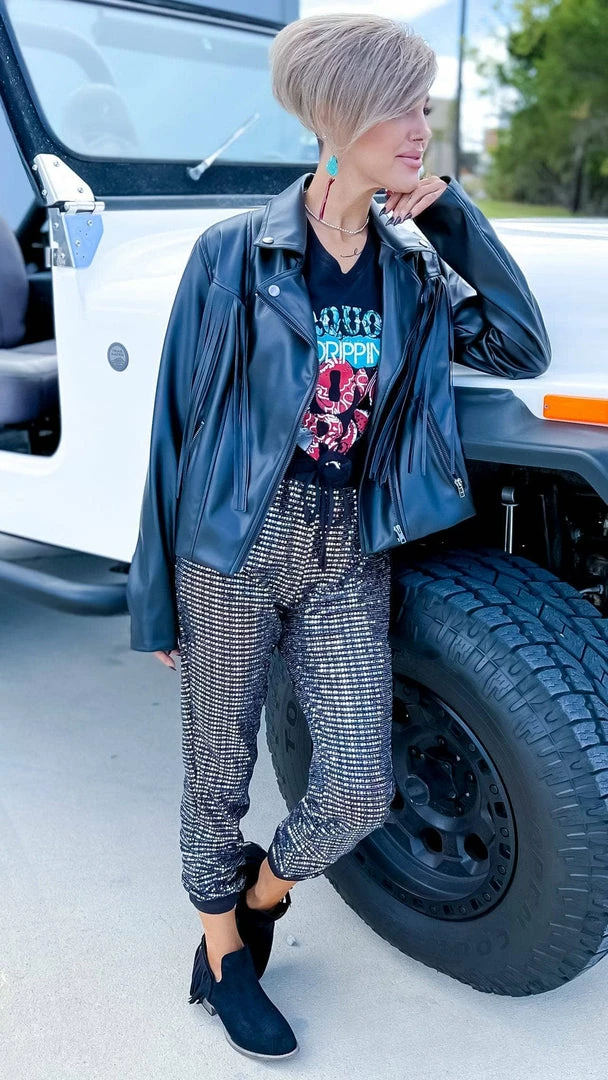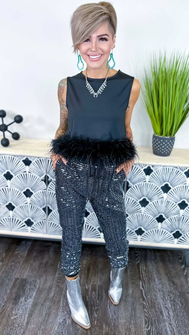 These pants will have you feeling like a million bucks. With their flattering fit and sparkly sequins, these pants add an element of luxury to any outfit. Dress them up or down – they’re perfect for any occasion. Whether you’re going out for drinks or running errands, these pants will have you looking and feeling your best.