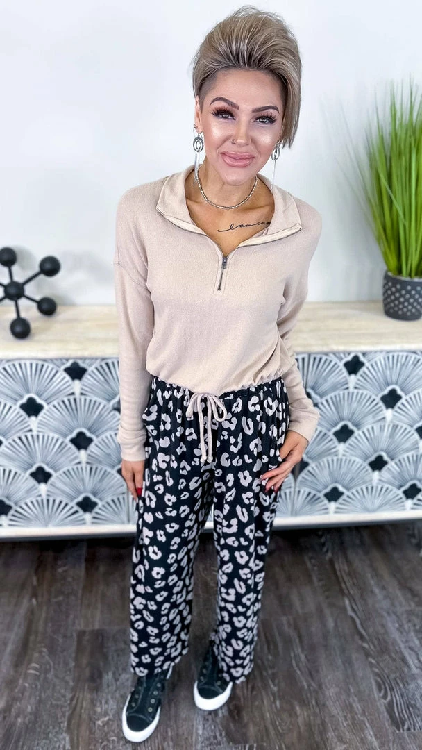Introducing the most comfortable pants you will ever own. With an elastic waistband and a comfortable fabric, these pants are perfect for those lazy days when you just don’t want to put any effort into getting dressed. With an animal print design, these pants add a touch of fun to any outfit. Whether you’re wearing them to lounge around the house or out for a day of running errands, you’ll love the way these pants make you feel.