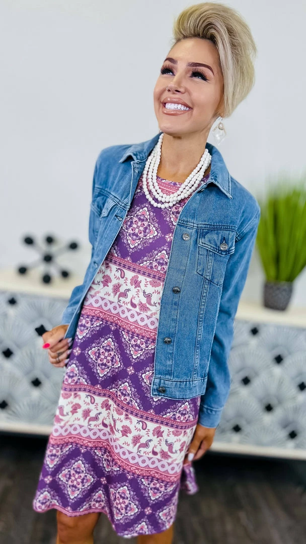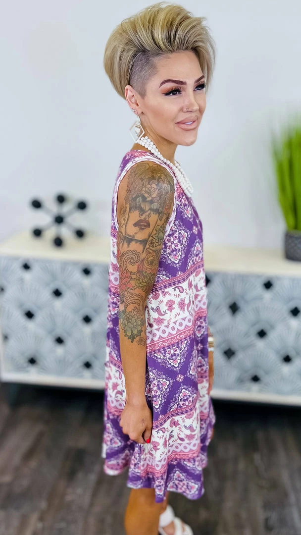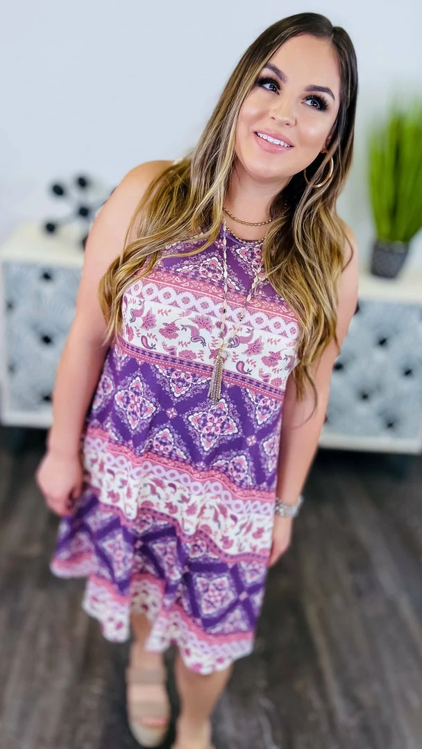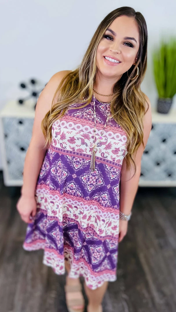 The perfect dress for any occasion, the Finding Grace Dress is sure to turn heads. In a beautiful floral print, this knee dress is accented with a printed colorblock design. The sleeveless silhouette makes it perfect for warmer days. Whether you’re headed to a party or a picnic, this dress is sure to impress.