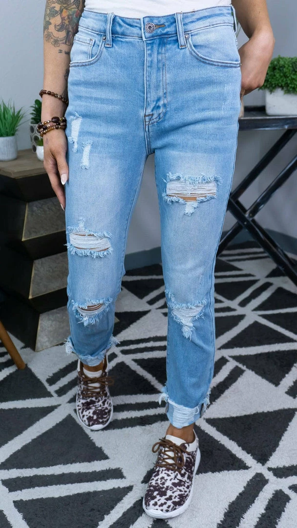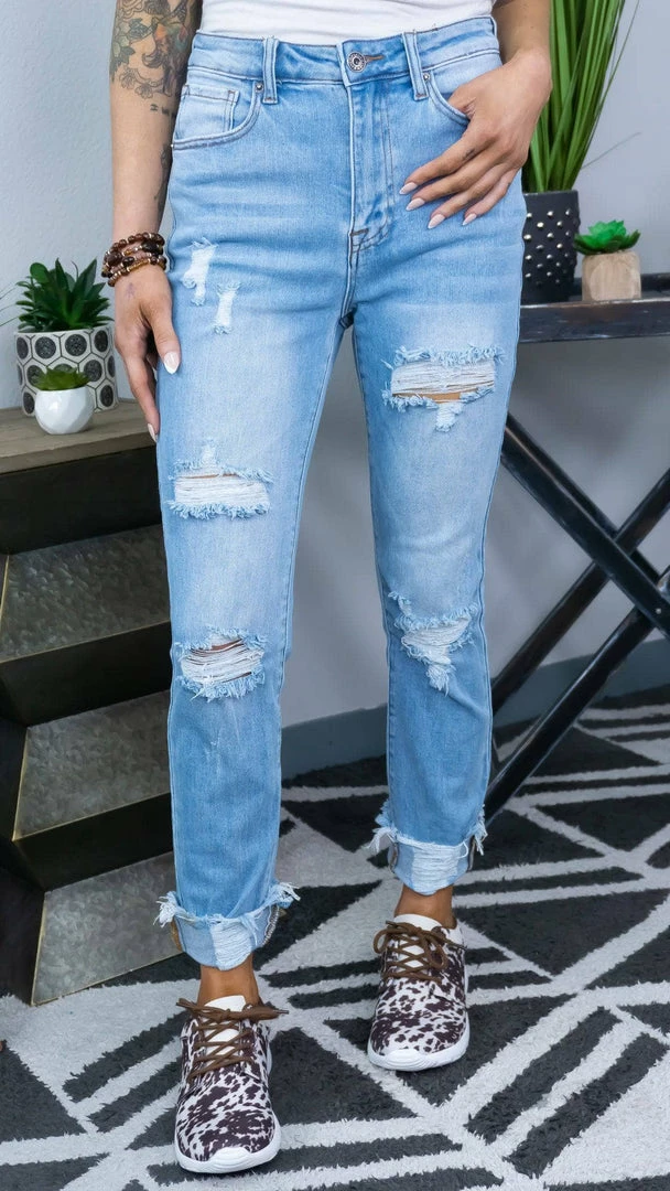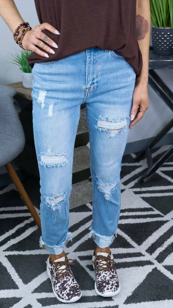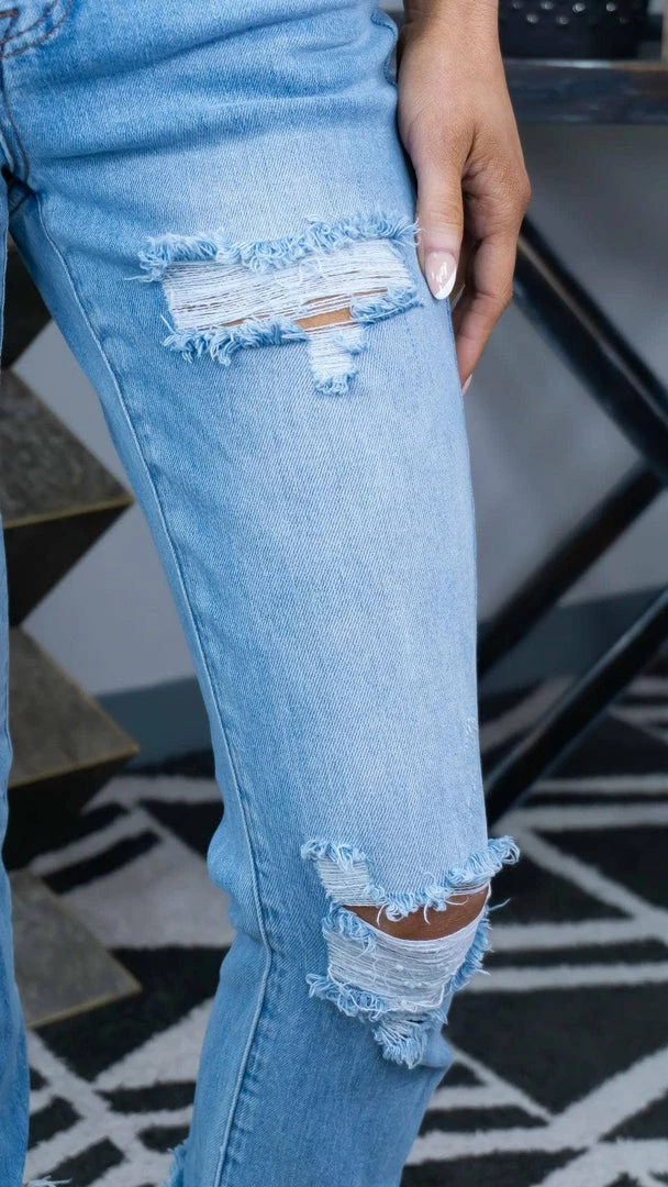 Style: DistressedΒ Straight Leg Jeans