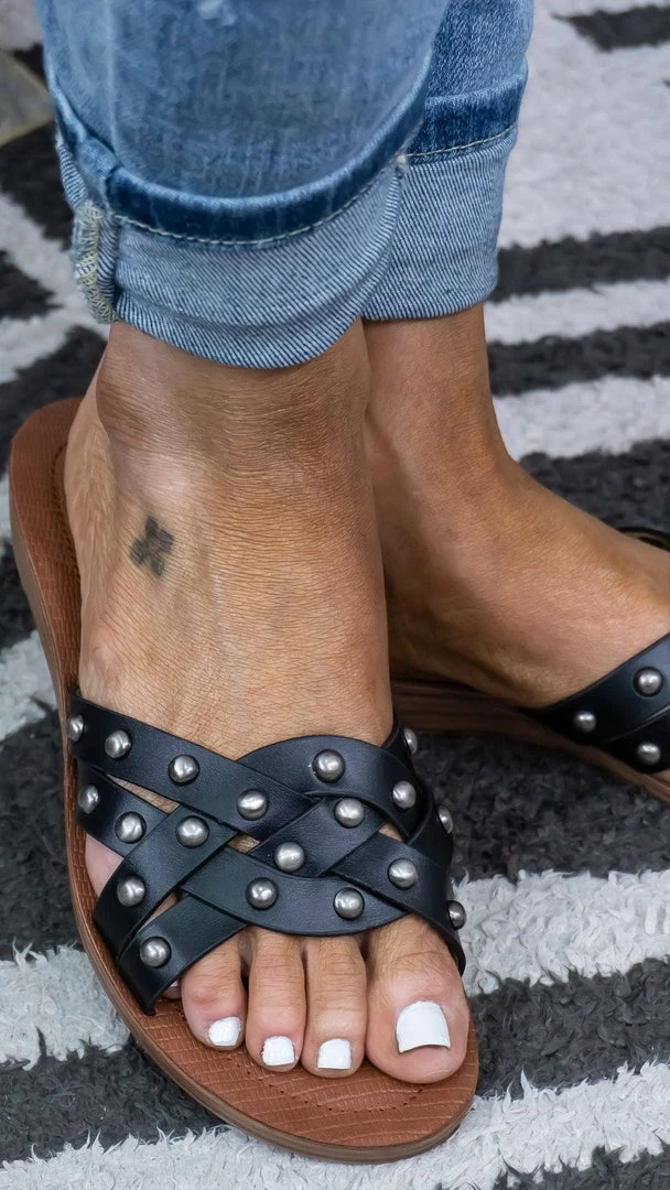 Make a statement this summer with these fierce black sandals. These shoes are perfect for a night out on the town. With their trendy silver studded detailing, they’ll add some glamor to any outfit. With their easy slip-on design, these sandals are easy to wear and easy to love.