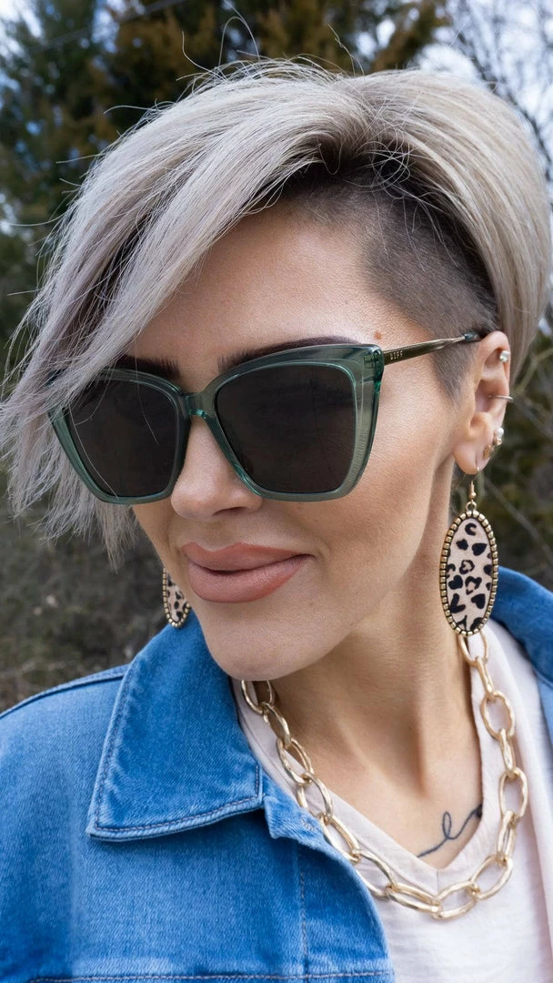 Our Becky II is for the life of the party! Dress to impress in these oversized shades, featuring a flirty cat eye, luxe metal temples, and endless glamour.