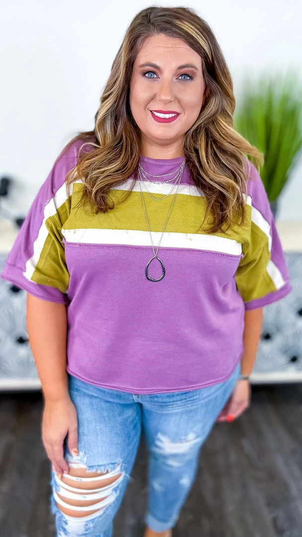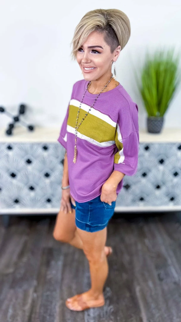 Find your zen in our Find Your Balance Top. With its boxy fit, this colorblock top in hues of blue is perfect for your next yoga class or meditation session. The unfinished edges lend a relaxed look to this short sleeve top, while the round neck provides just the right amount of coverage. Whether you’re seeking peace or just a new go-to top, our Find Your Balance Top was made for you.