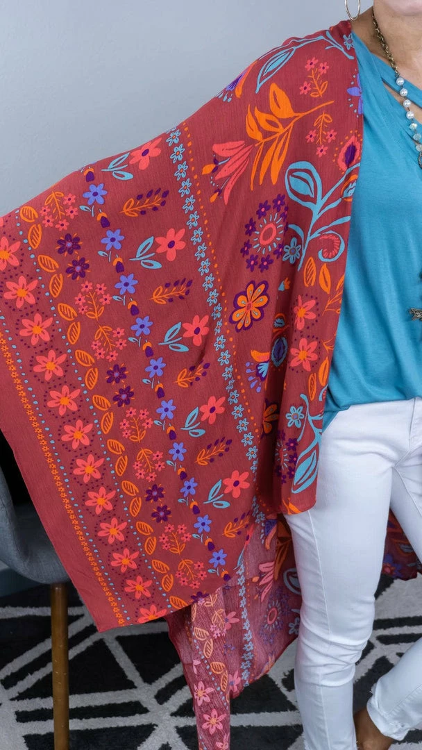 This light and airy cardigan is perfect for any season! With its fun and floral-inspired print, this cardigan is perfect for any free spirit. The lightweight fabric makes it a great choice for warmer weather, while the wide sleeves add a touch of style. Whether you’re strolling through a city park or hanging out with friends, this cardigan will keep you feeling stylish and comfortable.