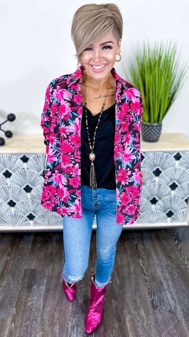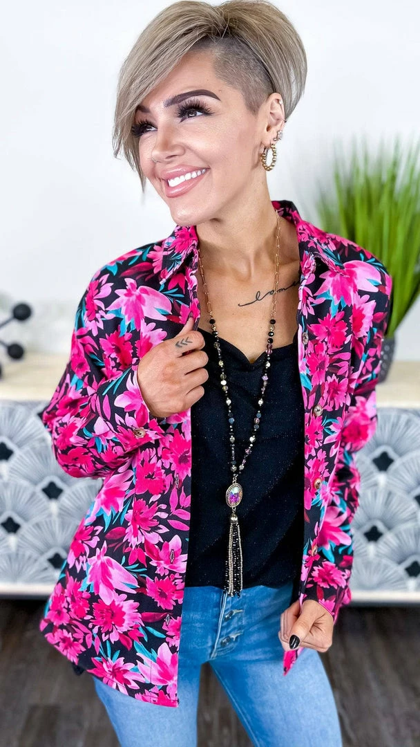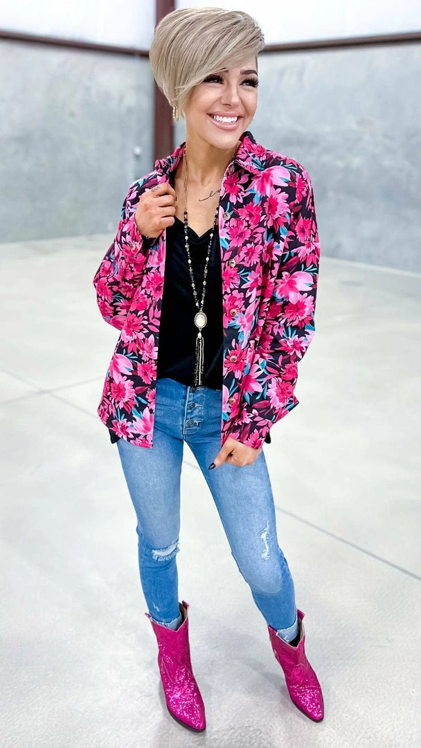 The best things come to those who wait. And thisΒ shacket is worth the wait. With a beautiful floral print, this button down is perfect for layering or wearing on its own. The fur lining adds a touch of luxury, making it the perfect piece to reach for when you want to feel your best.