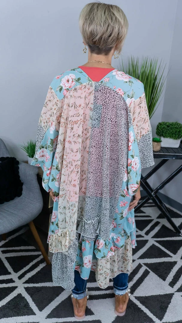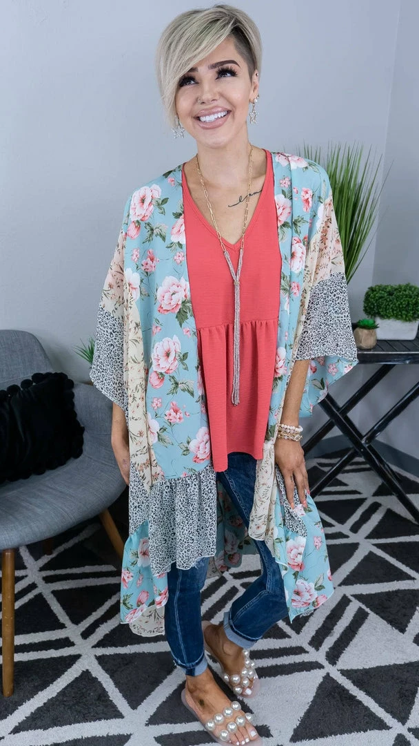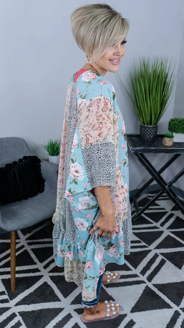 A beautiful smile is always paired with this adorable cardigan featuring a mix of floral and animal print colorblock, flutter hemline, and a flowy silhouette!Β