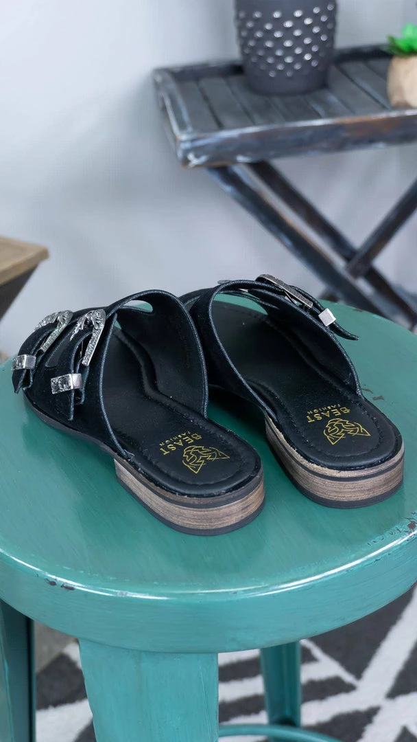 Take a walk on the wild side with our Alice sandals. These buckle sandals are perfect for channeling your inner fashionista. With a versatile black hue, these sandals can be dressed up or down. With a comfortable fit and stylish design, our Alice sandals are a must-have for any fashion-savvy woman.