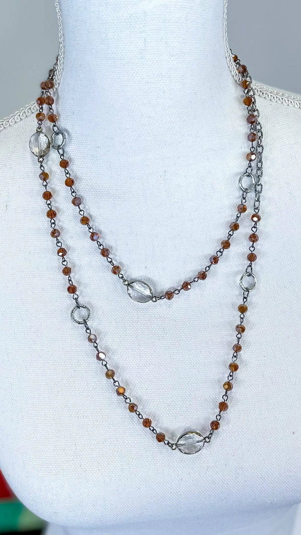 ThisΒ brownΒ necklace is the perfect addition to your jewelry collection. A long beaded chain with delicateΒ brown beads, this necklace is perfect for everyday wear. The light color makes it easy to pair with other pieces, and the unique design is sure to turn heads. With its pretty details and versatile style, this necklace is a must-have for any fashion-savvy woman.