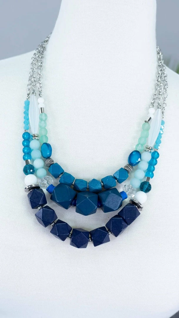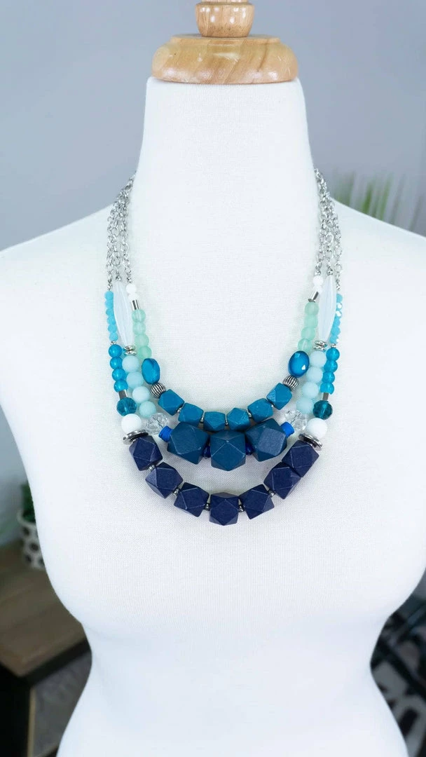The different shadesΒ of blue in this layered necklace give us such beachy vibes! This necklace is perfect to add a pop of color to your outfit!Β