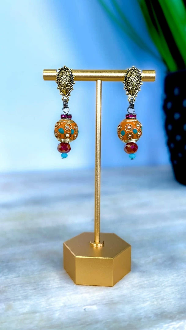 These earrings will add some character to your style. Made from a mix of carefully curated beads, these earrings are a unique addition to any outfit. The eclectic mix of textures and colors makes these earrings as interesting to look at as they are to wear. With their funky vibe, these earrings are perfect for a festival or a day spent wandering around a new city.