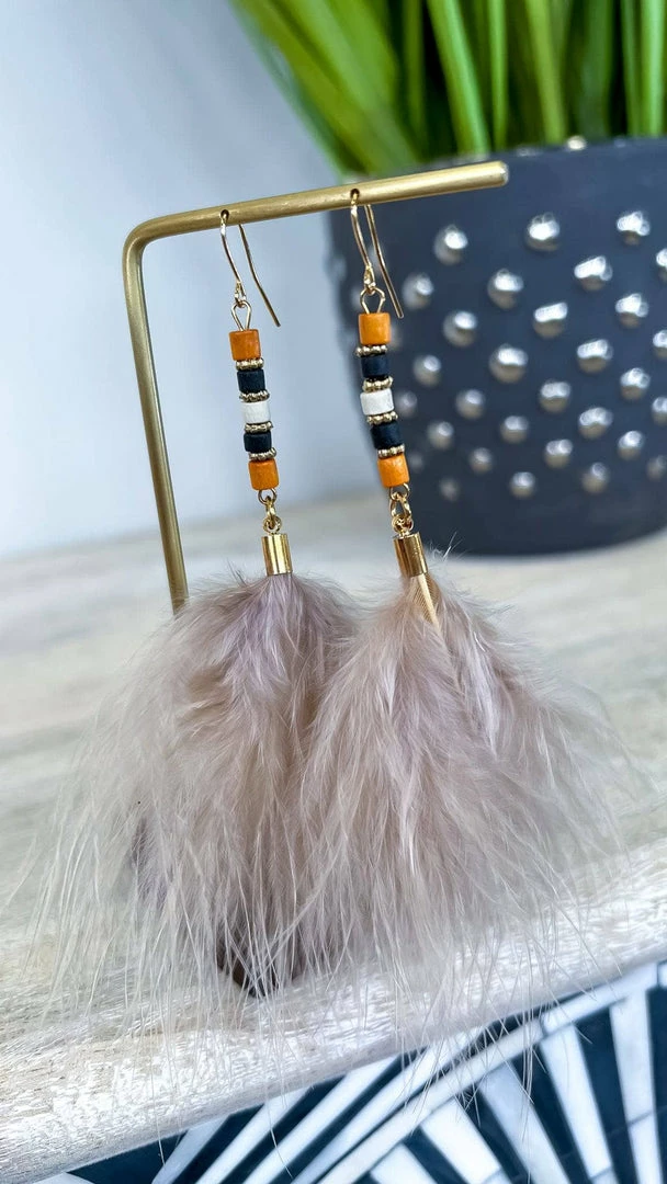 Add some fun and flair to any outfit with the Lennora Earrings. These earrings feature feathers and beads in a neutral palette, making them perfect for any occasion. Whether you’re dressing up for a night out or keeping it casual for a day in, these earrings are a great way to add a pop of personality to your look.