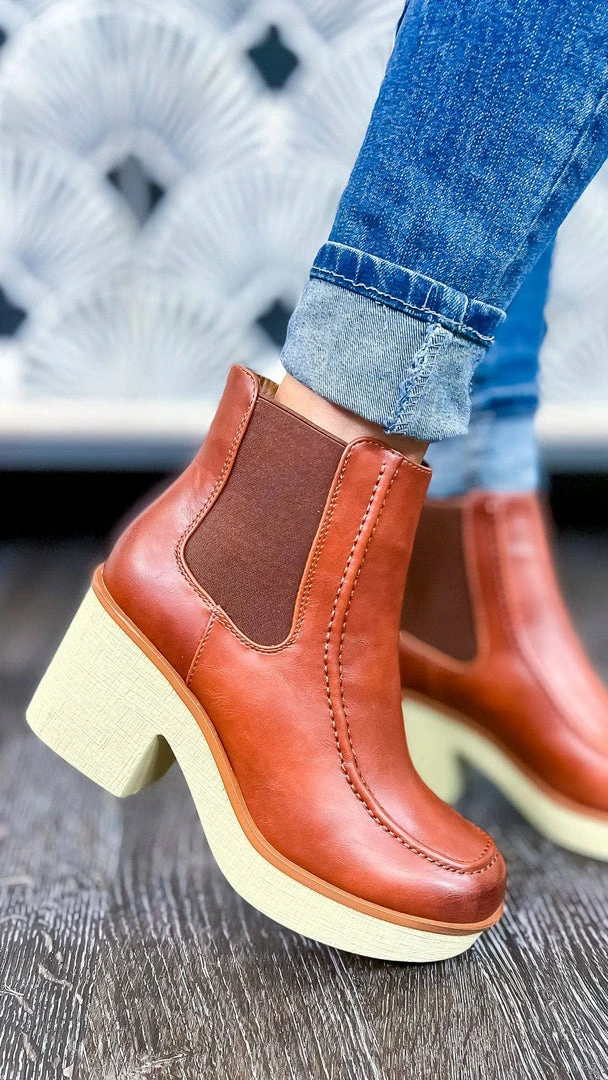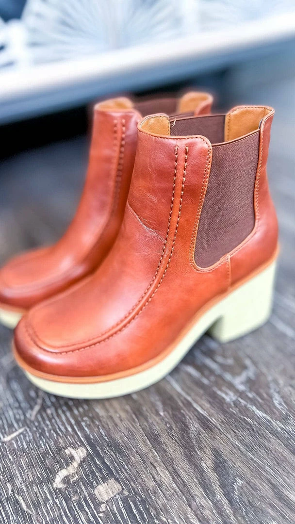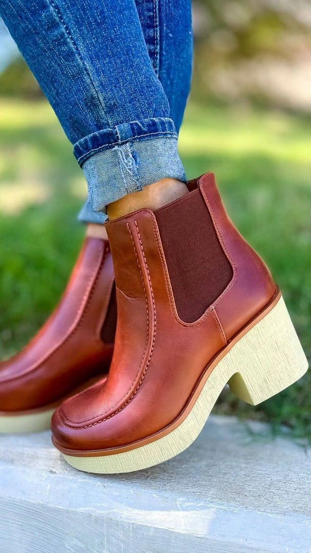 TAKE A STEP UP IN STYLE WITH THESE CLEO BOOTIES. A luxurious take on a wardrobe staple, these cognac booties will have you stepping out in style. With a sleek pointed toe and a heel, these booties elevate any outfit. Whether you’re dressing up for a night out or just running errands, these booties add a touch of glamor to any outfit.