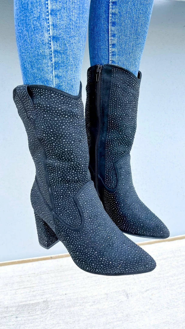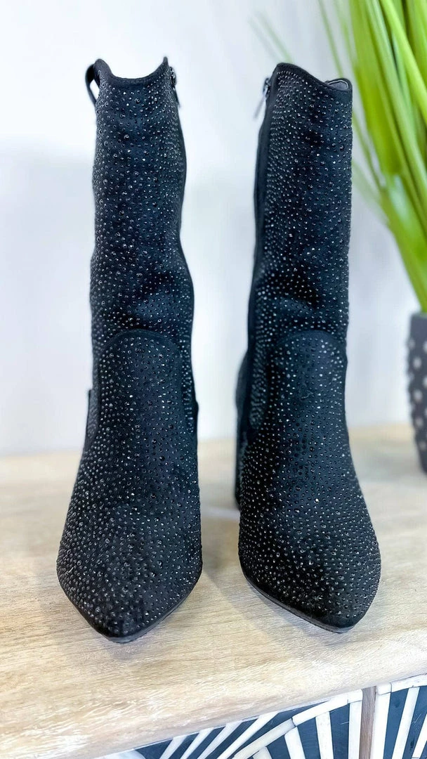 A little bit of sparkle never hurt anybody. Up your shoe game with our Splish Booties. With a black sequin and black glitter design, these heeled booties are perfect for making a statement. Whether you’re dressing up for a night out or dressing to impress for a big meeting, our Splish Booties will add that extra touch of glamor. Shine on, diva.