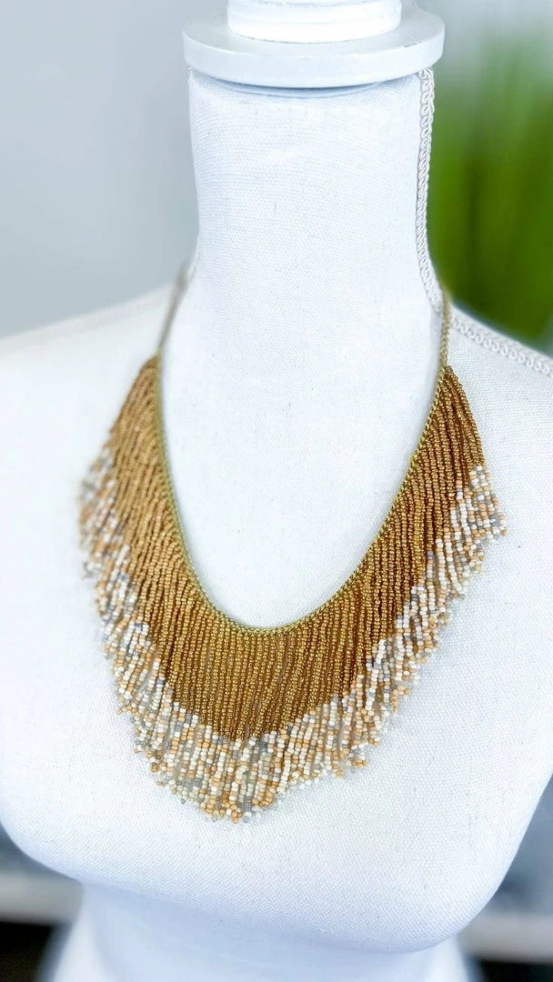 Step up your necklace game with this gorgeous fringe seed beaded necklace!Β This highly requested beauty is the perfect pieceΒ to add to your outfit when you want to take it up a notch!Β