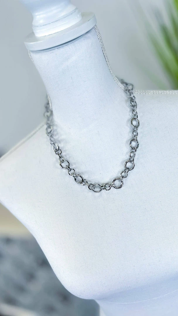 Delicate and dazzling, this beautiful silver chain necklace is just what you need to add some glamor to your style. This lovely necklace is perfect for dressing up any outfit, from a simple dress to a formal gown. The long length makes it versatile and easy to wear. With its graceful design, this necklace is sure to turn heads. Add it to your jewelry collection today!