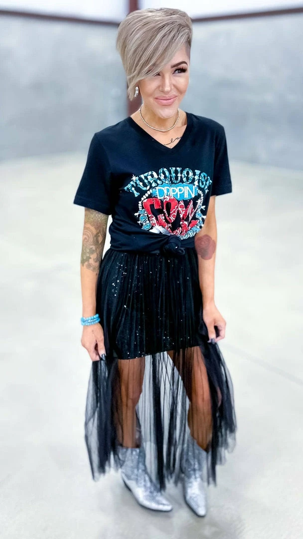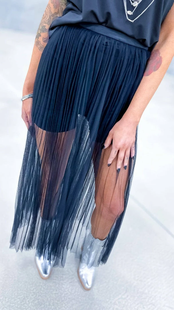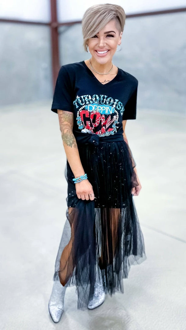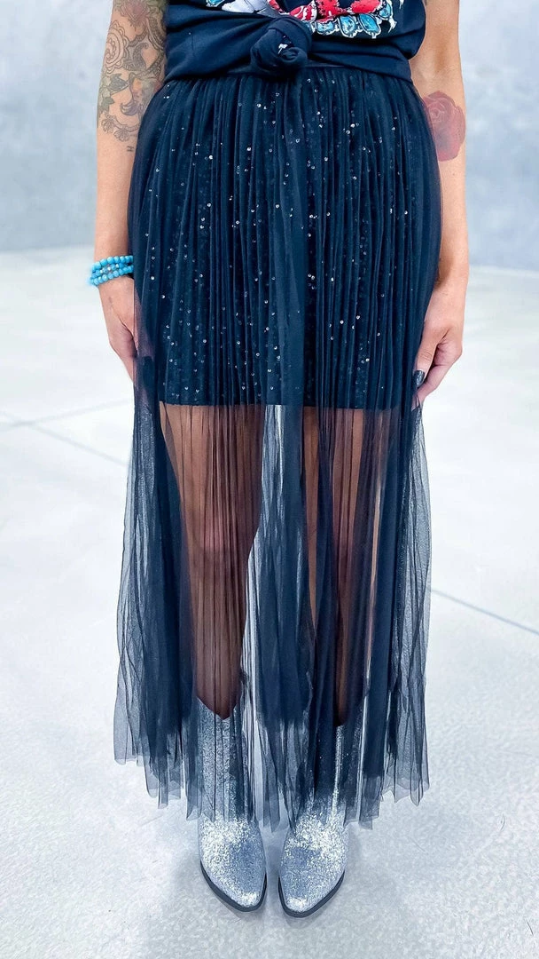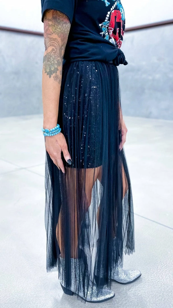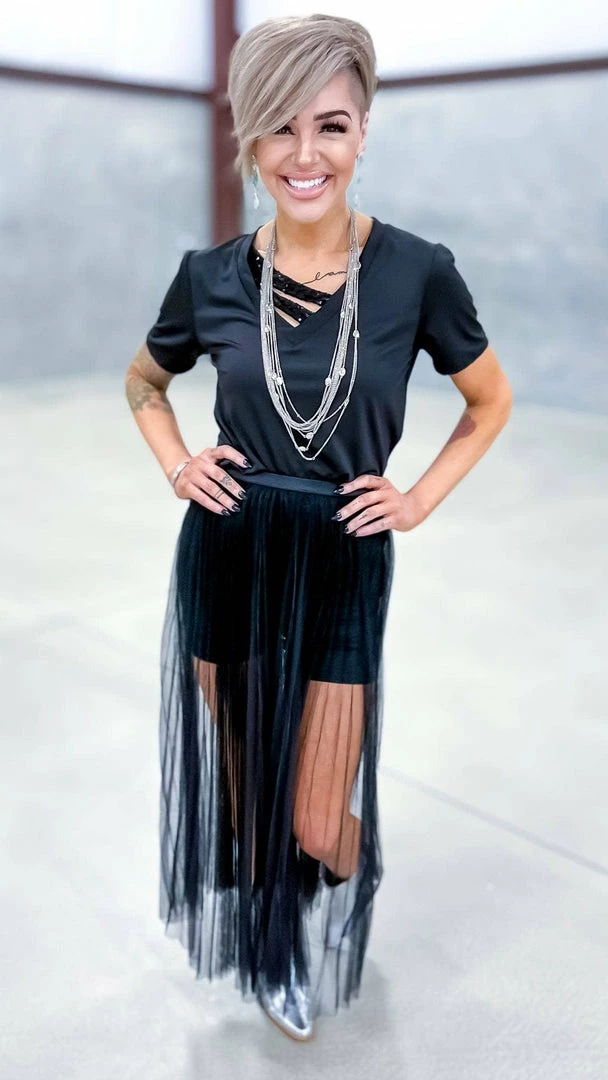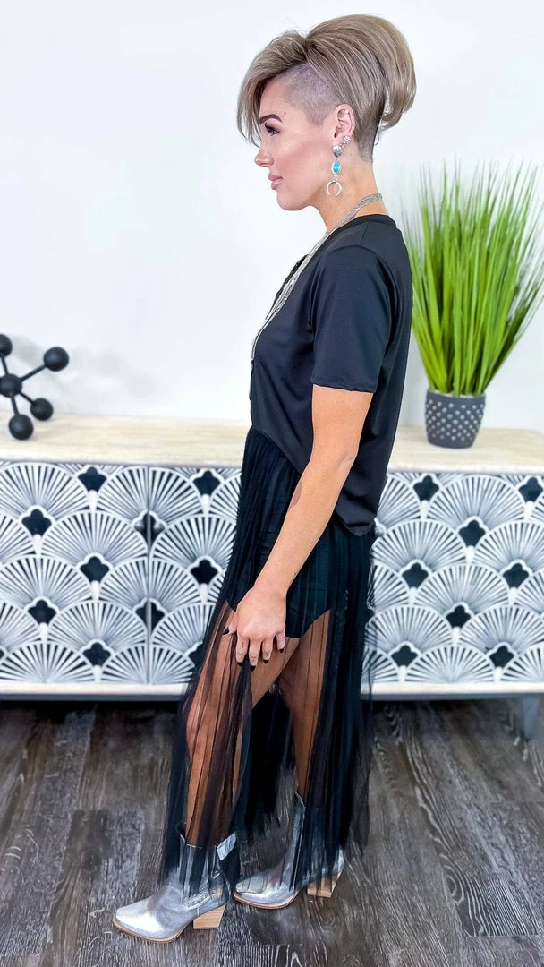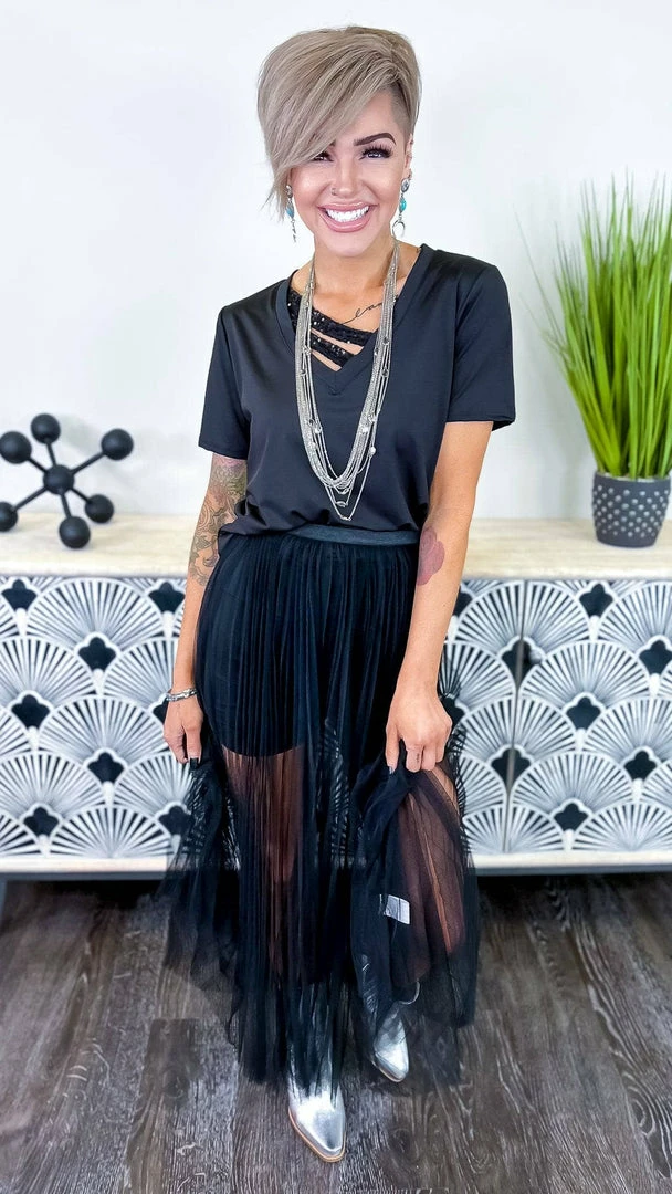 TheΒ Black See Yourself Skirt is a beautiful, flowing skirt that is perfect for a night out or a special event. The tulle fabric is soft and airy, and the mesh skirt overlay adds a touch of elegance. The skirt is midi length and hits right above your ankles, so it is both flirty and conservative. This skirt is sure to turn heads and make you feel like a princess.