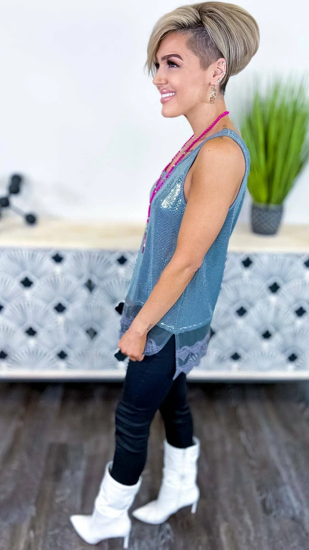 Bring the party with you wherever you go. With its fun and flirty silhouette, this tank is sure to turn heads. It’s perfect for a night out on the town or a day spent in the sun. Made with sequins that catch the light, this tank will add a touch of glamor to any outfit.