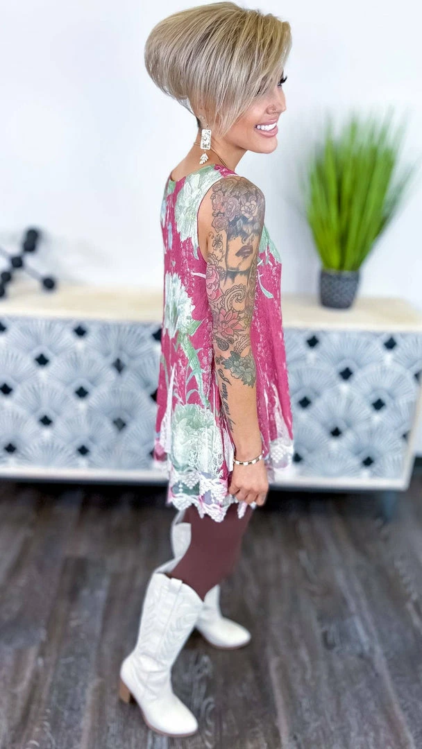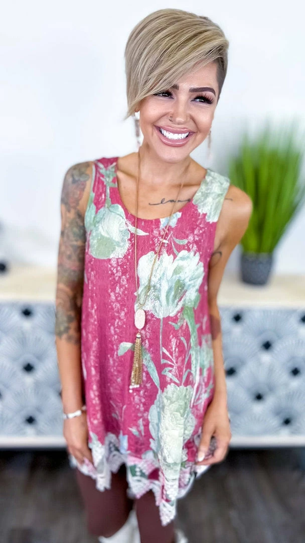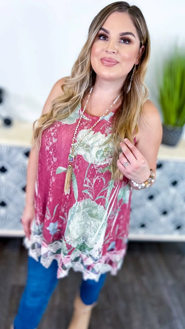 Spice up your look with this pretty lace tank. Made with wine-colored lace, this tank is perfect for date night or a day out with the girls. With a flattering fit and pretty floral details, this tank will have you feeling your best. Wear this tank with a skirt or jeans and watch your outfit come to life.