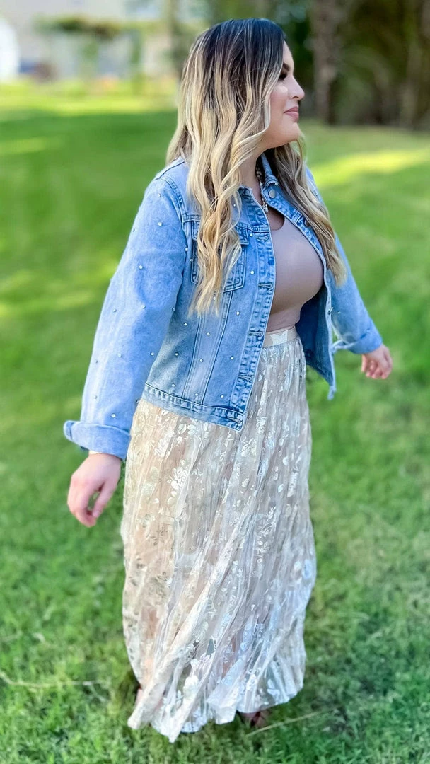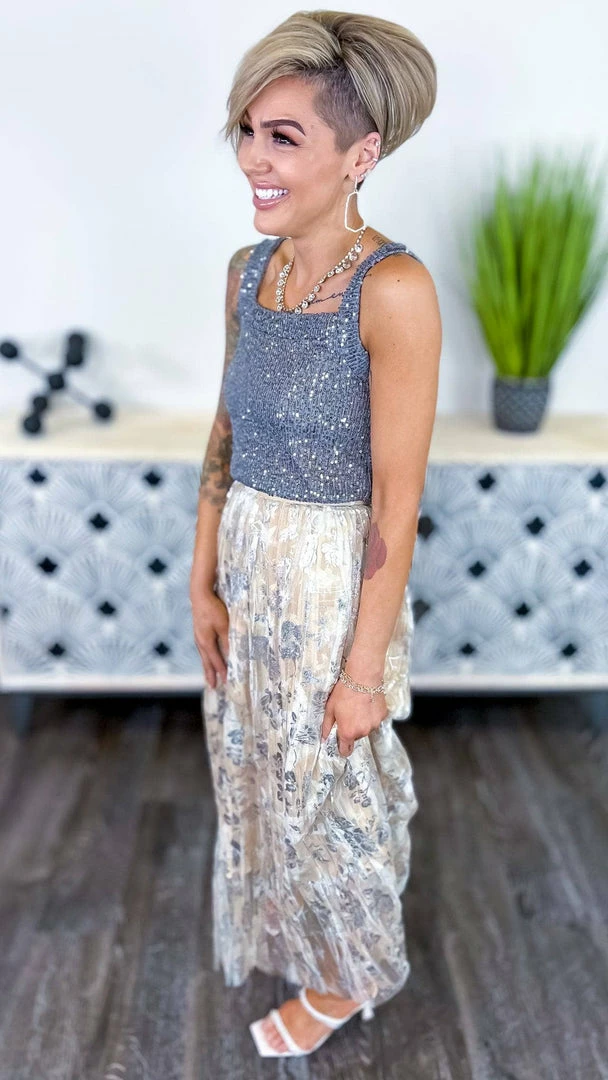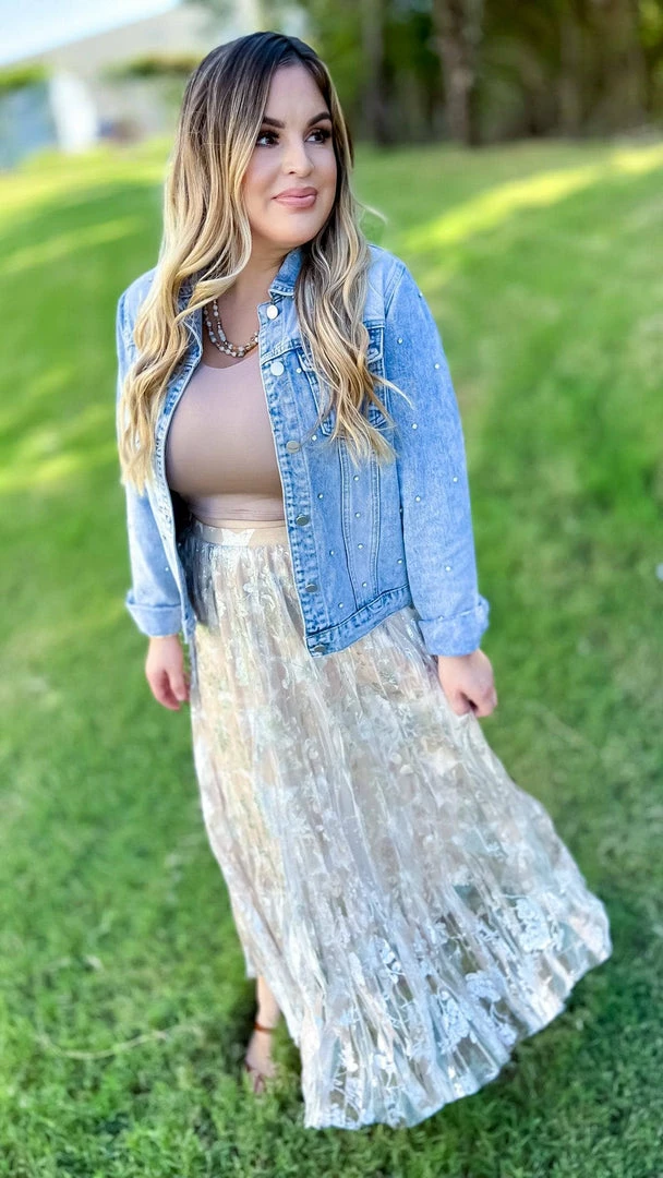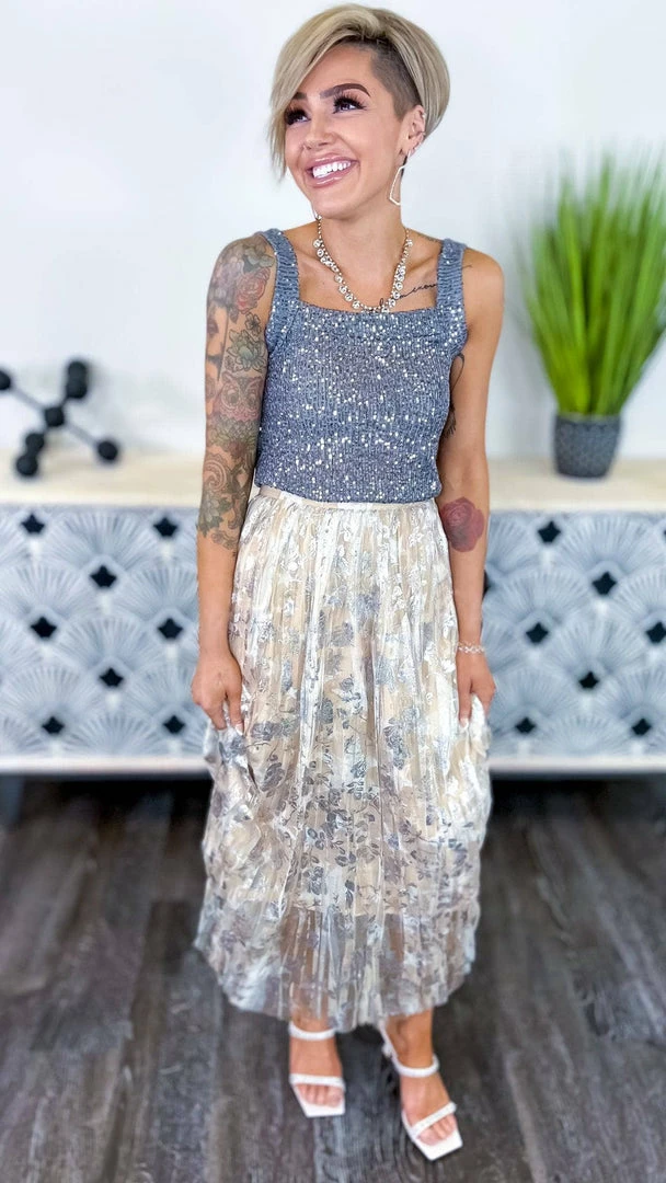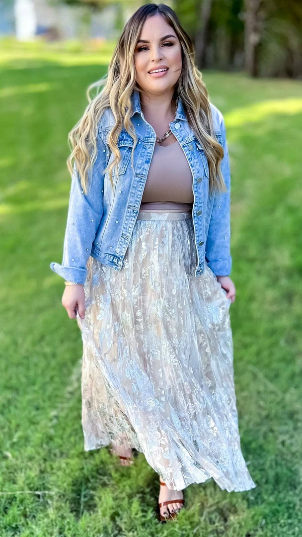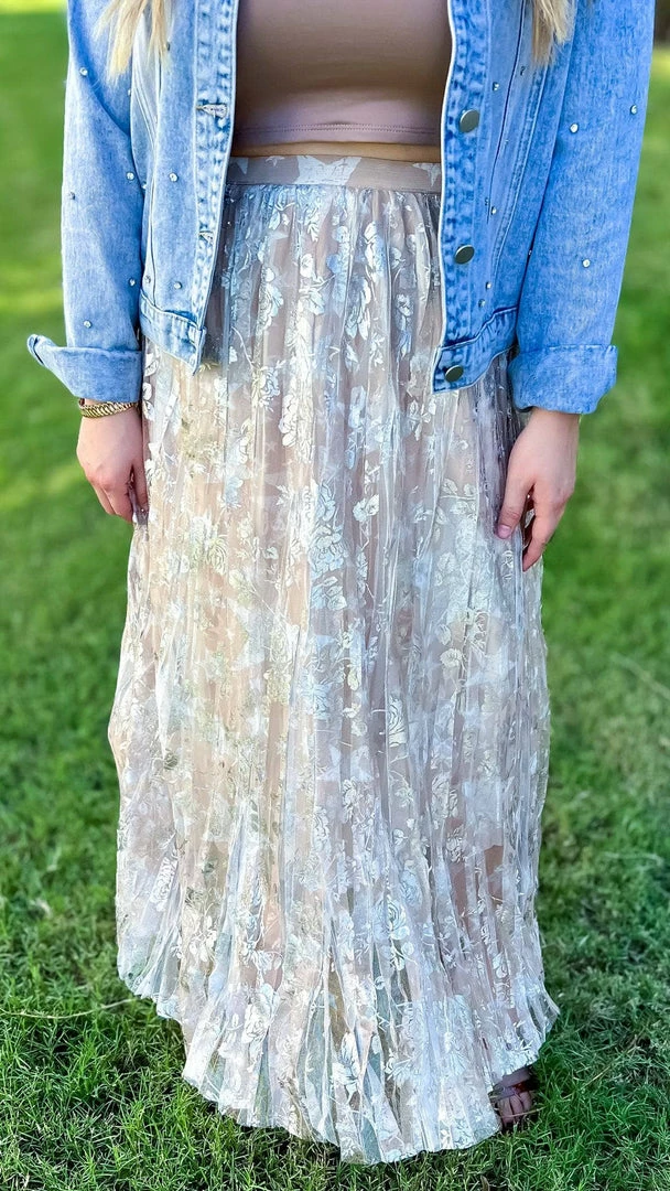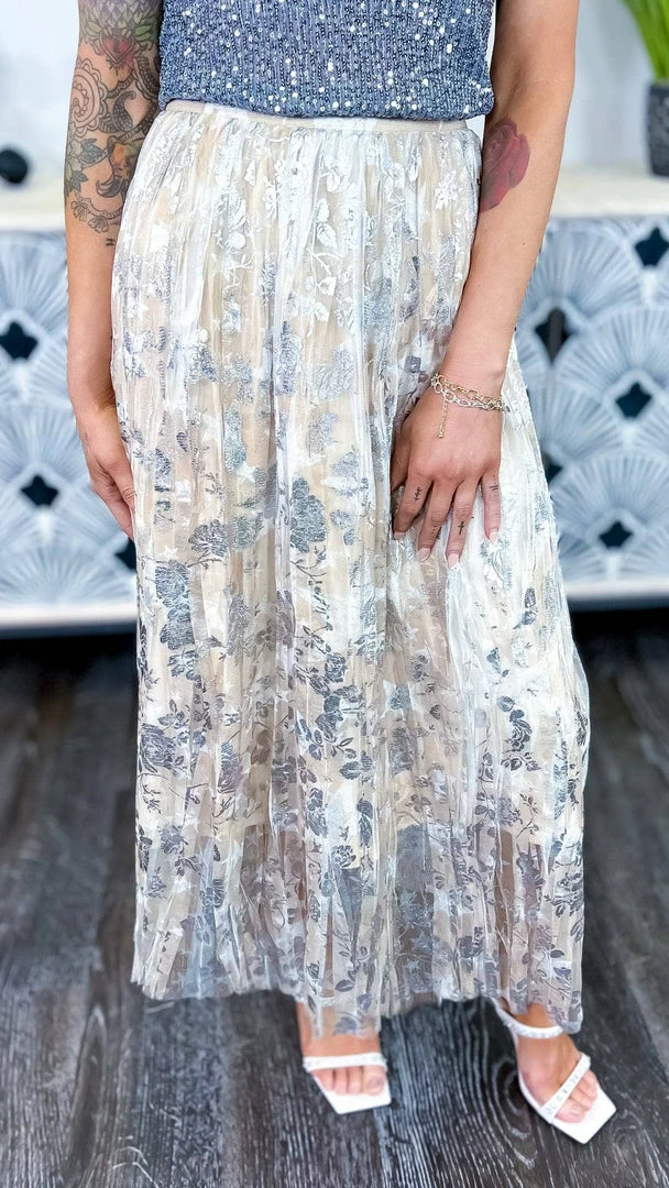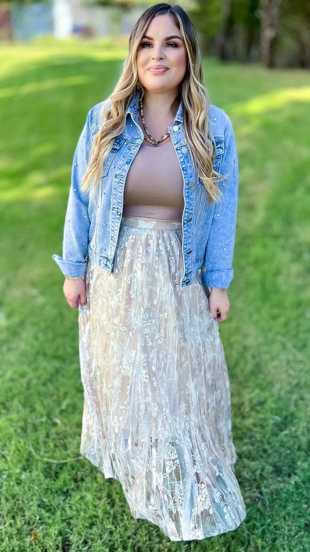 Sparkle and shine with this delicate tulle skirt. With its delicate stars, this beige skirt is perfect for twirling around on a special night out. The soft and flowy tulle will keep you feeling comfortable all night long. Whether you’re going to a wedding or just out for a romantic dinner, this skirt will make you feel like a glamourous goddess.