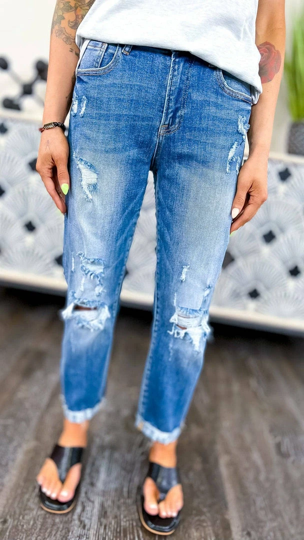 The must-have jeans of the season. With a medium wash and distressed detailing, these jeans are perfect for a casual day or evening out. With a versatile and comfortable fit, these jeans are a must-have in your denim collection. Made from high-quality materials and designed to last, these jeans are a must-have in your wardrobe.