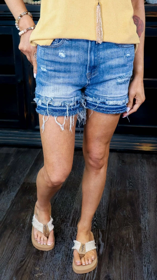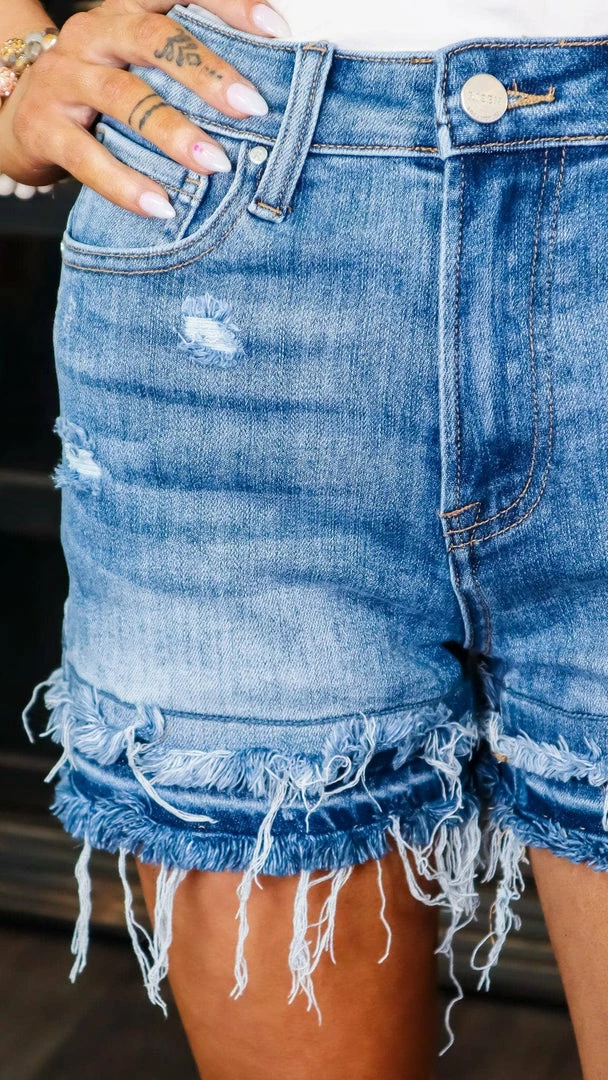 A summer essential, these Risen distressed denim shorts are perfect for hot days. With a comfortable fit and stylish design, these denim shorts are a must-have for your summer wardrobe. Made from durable denim, these shorts will keep you looking stylish all season long.