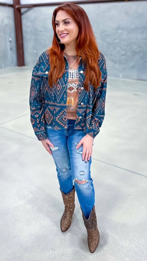 Slay the cold weather in style with this jacket. Decked out in an Aztec print, this jacket is perfect for winter. The corduroy and tribal print are on trend and will keep you warm all season. With a relaxed fit, this jacket is perfect for everyday wear. Throw it on over a dress or jeans and you’re good to go.