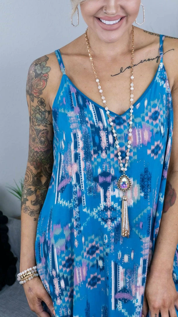 Feel like you are oceans away enjoying the breeze in this beautiful maxi dress! Throw on a classic pair of sandals, dainty jewelry, and a sun hat to top off your look!Β