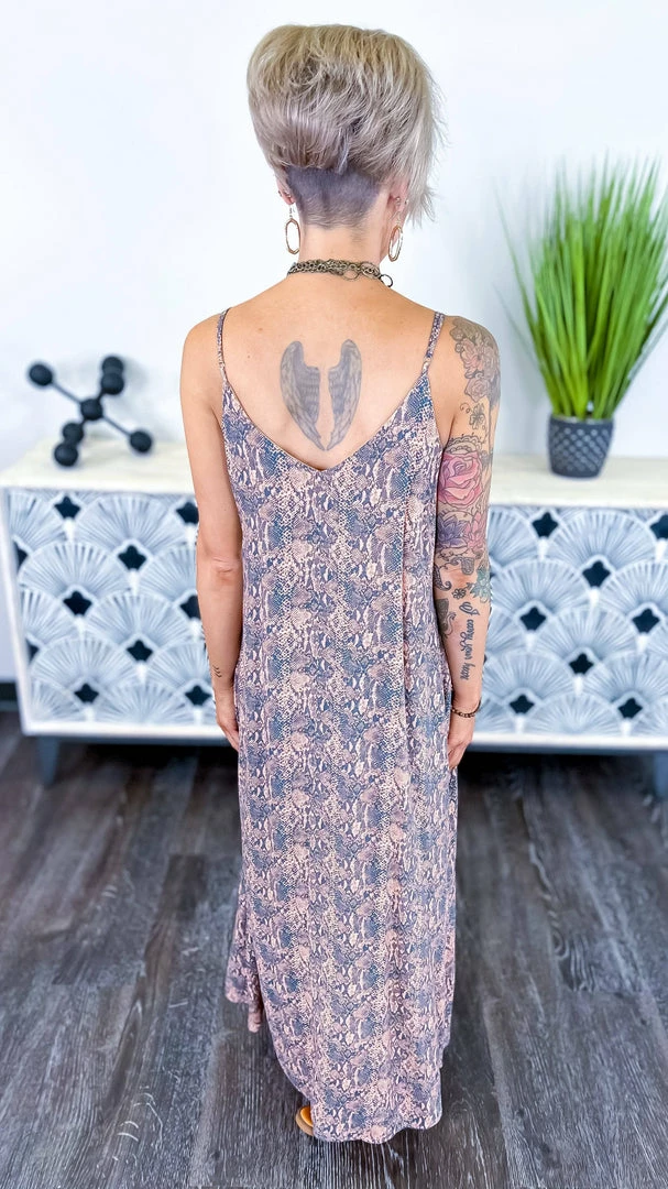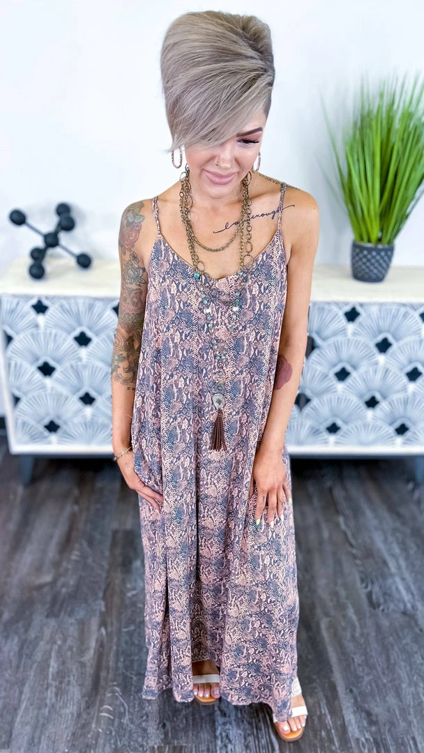 You’ll be the best-dressed guest at the next event with this maxi dress. Maxi dresses are always a go-to for special occasions – they’re classy and elegant, but with a modern and flirty twist. This one is no exception, with a bold teal and coral snake print that will turn heads. We can’t wait to see you in this dress – it’s sure to make a statement. Pair it with some statement earrings and you’ll be ready to go.