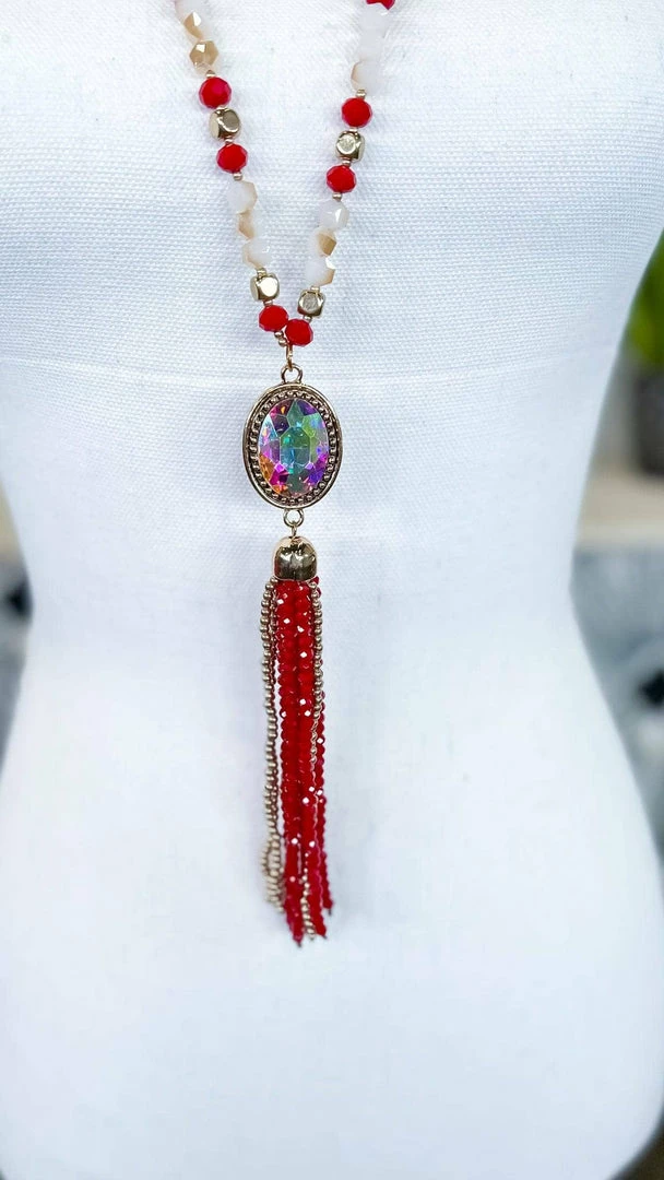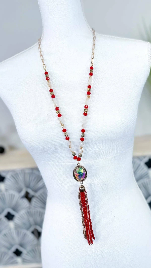 Crash all the parties in style with this beautiful necklace around your neck! The neutral colors in this necklace will make it super easy to style with all your outfits!Β
