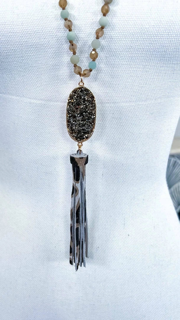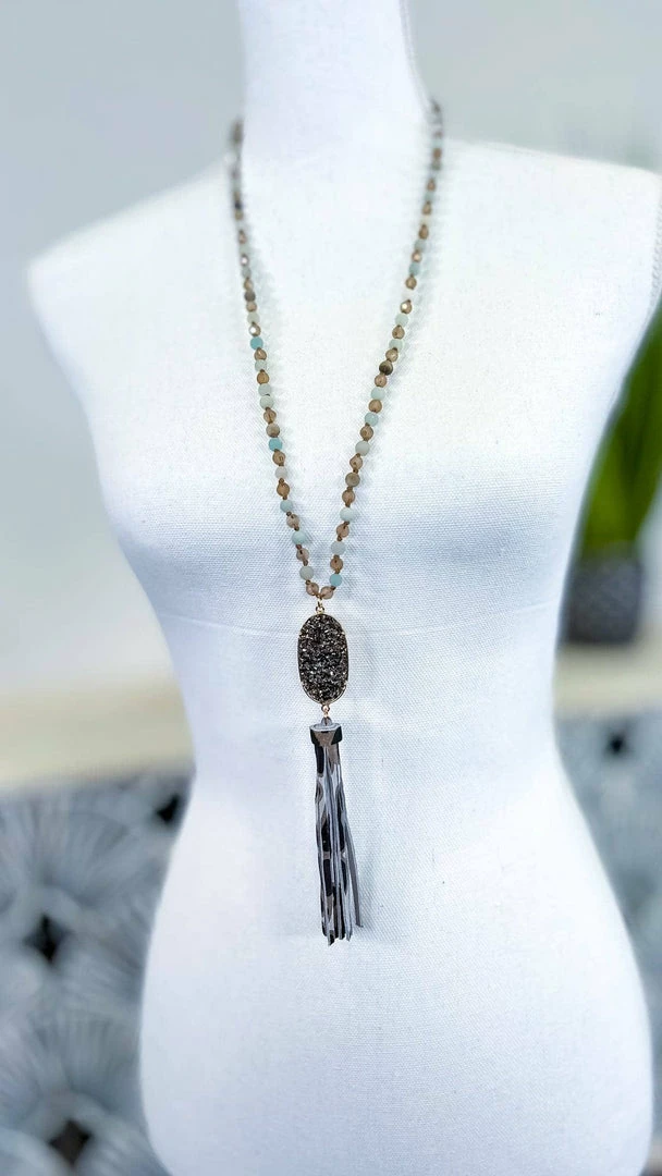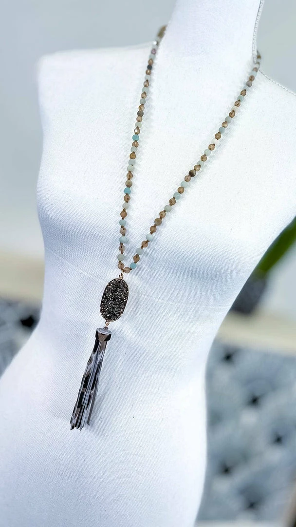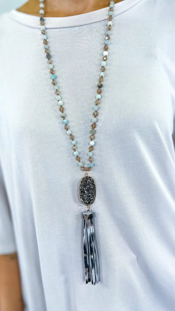 Take your style to new heights with the Fly Away With Me Necklace. This tassel necklace features a pendant with a statement-making design. The necklace is perfect for adding a touch of glamor to any outfit.