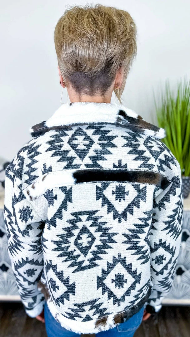 Now this is a jacket with some serious style. The Cattle Driving Jacket is perfect for those chilly days or nights. Stay cozy in this sherpa jacket, featuring an eye-catching aztec print. You’ll love the cow print detailβit’s the perfect way to add a touch of country charm to your look.