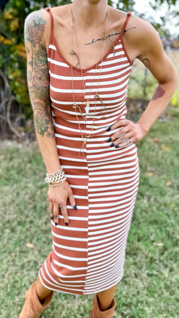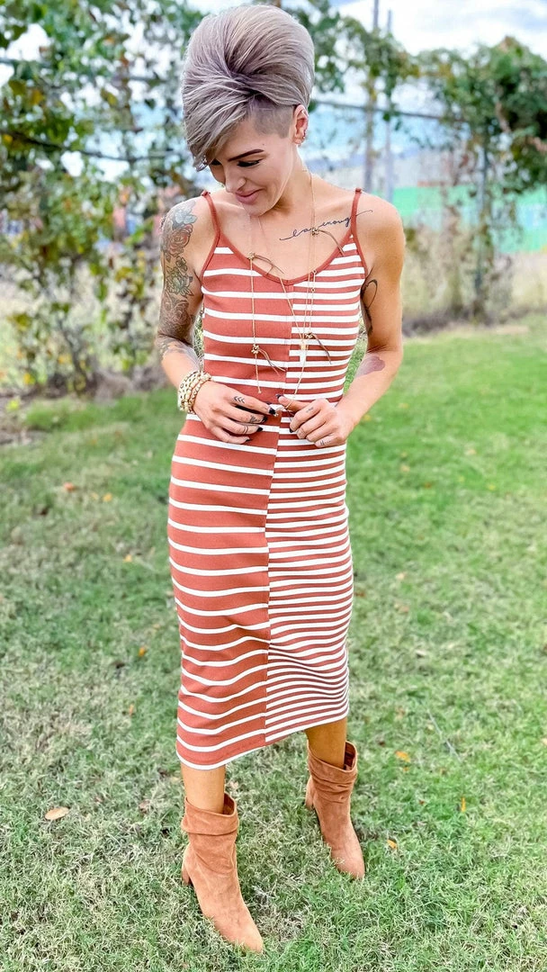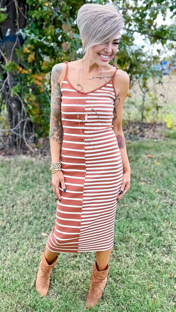Elevate your style with this colorblock stripe dress from the ZigZag Stripe. With an on-trend silhouette and a playful attitude, this spaghetti strap dress will add some fun to your wardrobe. Perfect for any summer occasion, this dress is sure to turn heads. Give your style an attitude upgrade with our Attitude Upgrade Dress.