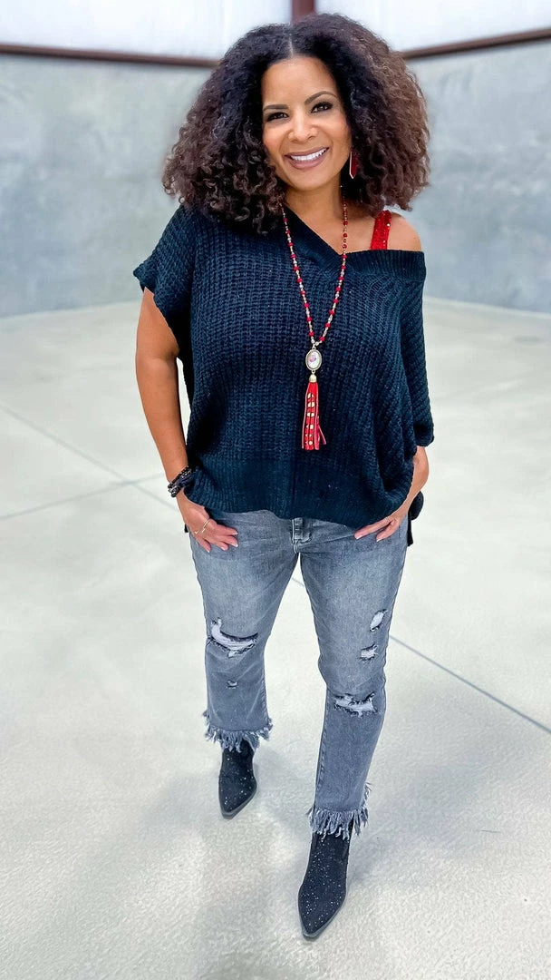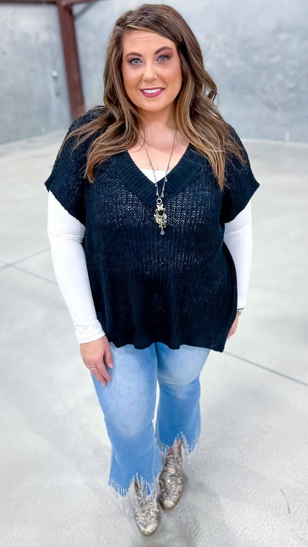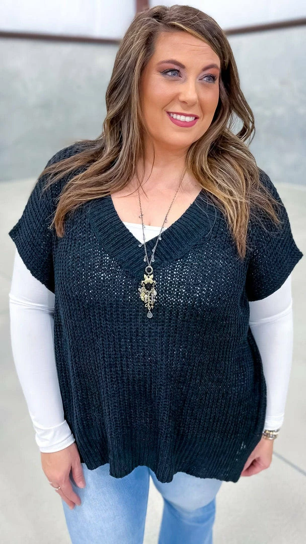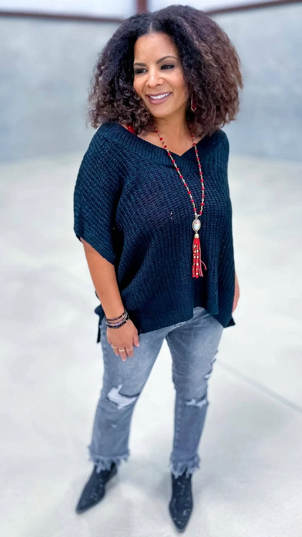 The ZigZag Stripe Black Call Me Confident Sweater is just the piece your wardrobe has been needing. With a solid black color, this short sleeve sweater is perfect for layering or wearing on its own. The v-neck sweater style is flattering and easy to style, making it a versatile piece that can be dressed up or down. Whether you’re headed to the office or out with friends, this sweater will have you looking and feeling your best.