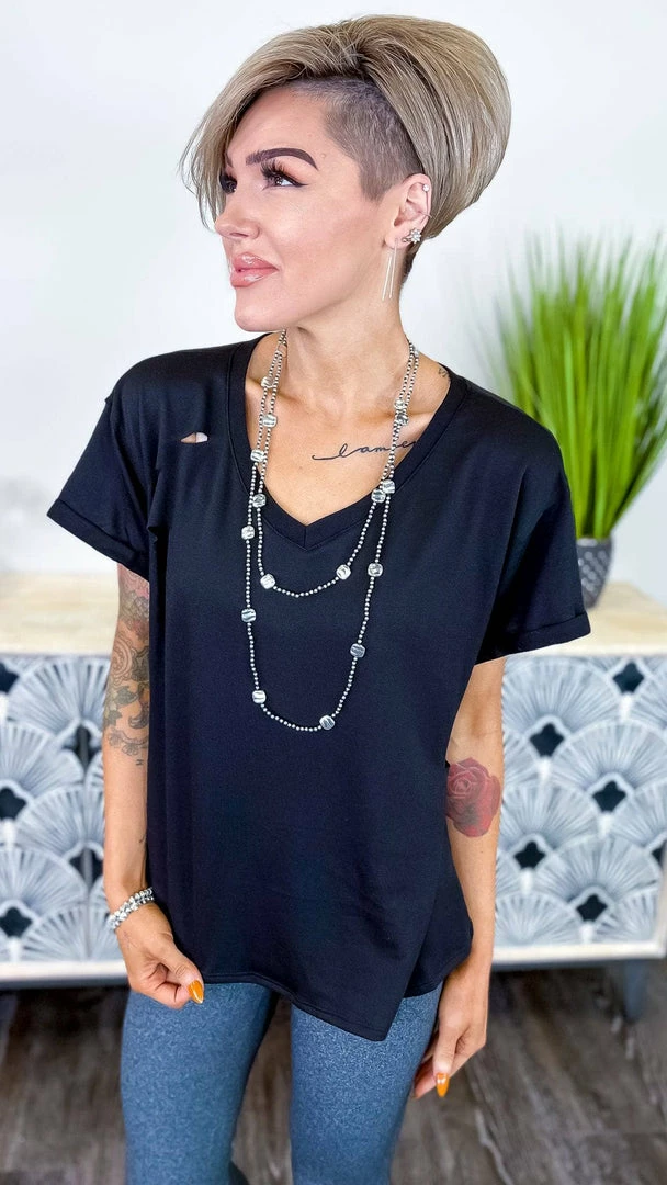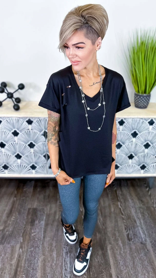 Best friends know how to have fun. This fun and flirty ZigZag Stripe short sleeve top is perfect for days spent in the sun. With a distressed look and comfortable fit, this top is ideal for a girl’s day out. With a wide v-neck and playful stripes, this top is sure to turn heads.