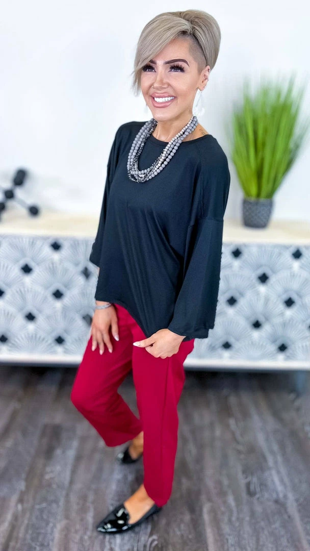 The ZigZag Stripe’s Instant Feels Top is the perfect way to add a little something extra to your everyday look. This solid black top features 3/4 sleeves and a flattering fit that will make you feel your best. Dress it up or down, this top is versatile and easy to wear.