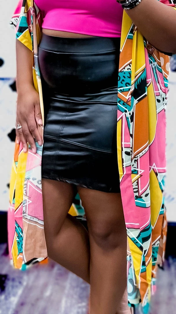 Sultry and captivating, turn heads when you enter the room in thisΒ black nightlife skirt. The ZigZag Stripe’s leather skirt is crafted from luxurious faux leather that clings to your curves in all the right ways. A flirty mini length makes this piece impossible to resist. strut your stuff with confidence knowing all eyes will be on you.
