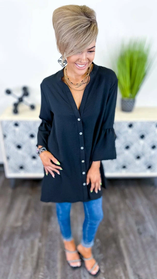 The chic and comfortable ZigZag StripeΒ Black No Issues Tunic is a must-have in any fashionista’s wardrobe. This button-down top features long balloon sleeves and a flowy silhouette that is perfect for any season. Whether you’re dressing it up with pants and heels or keeping it casual with jeans and flats, this top is versatile and flattering. The ZigZag Stripe No Issues Tunic is perfect for any occasion.