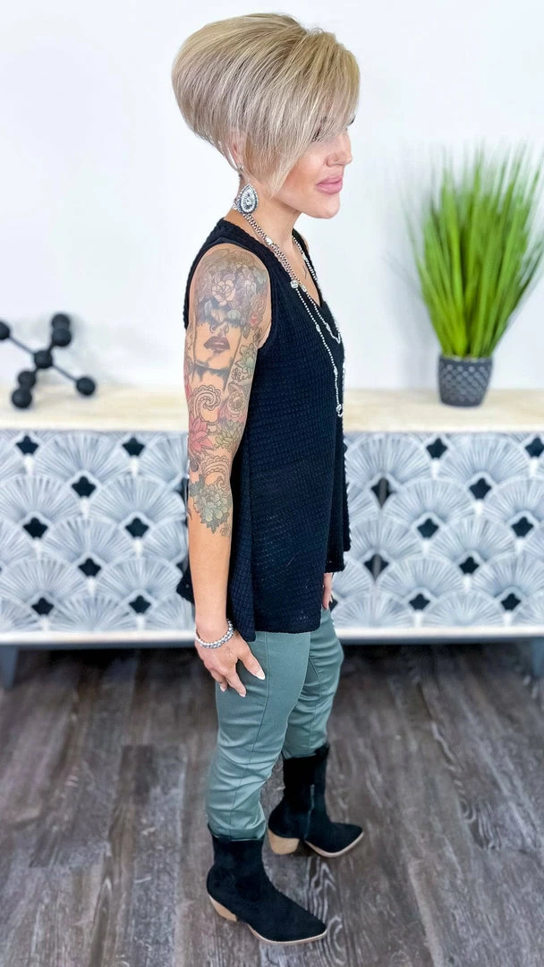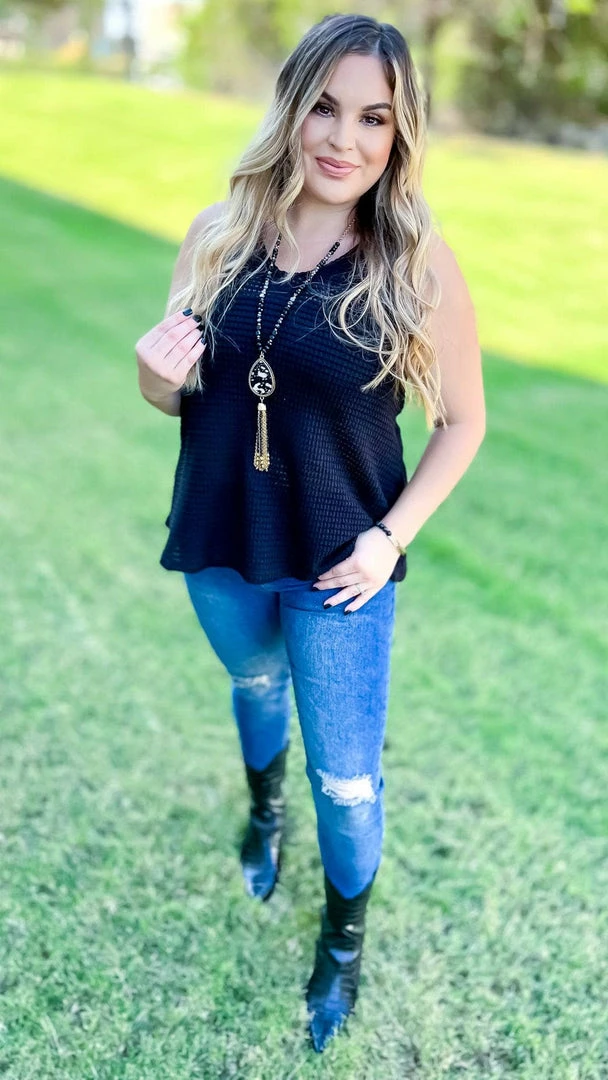 A new season calls for a new wardrobe staple and The ZigZag Stripe has you covered with the Style Leader Tank. This tank top is essential for your everyday style. With a waffle-knit design, it’s perfect for layering or wearing on its own. The heavy waffle knit will keep you comfortable all day long. Add this tank to your wardrobe and enjoy leading the trends all season long.