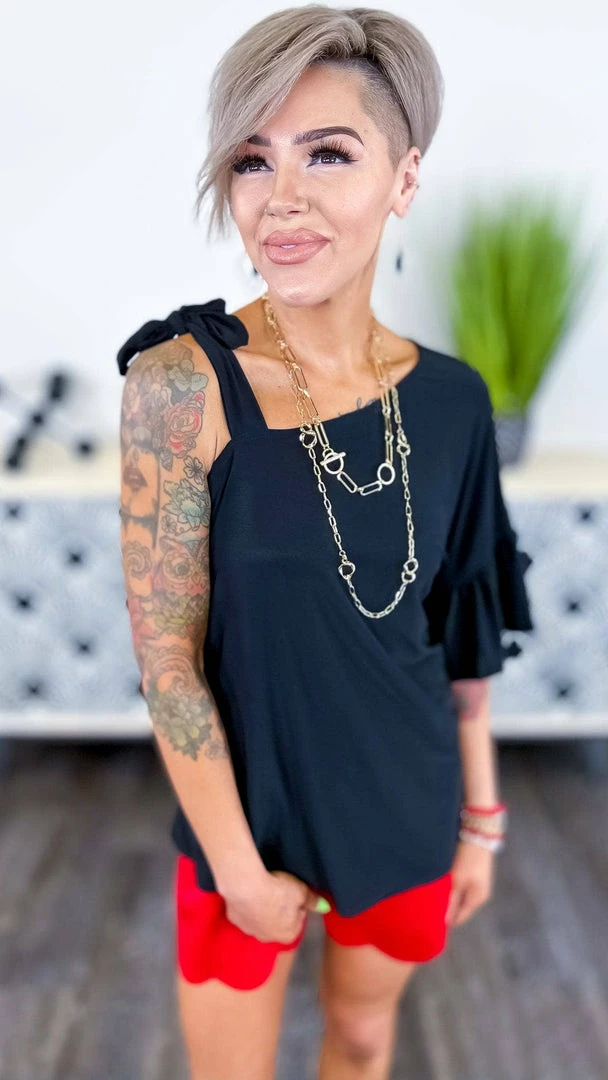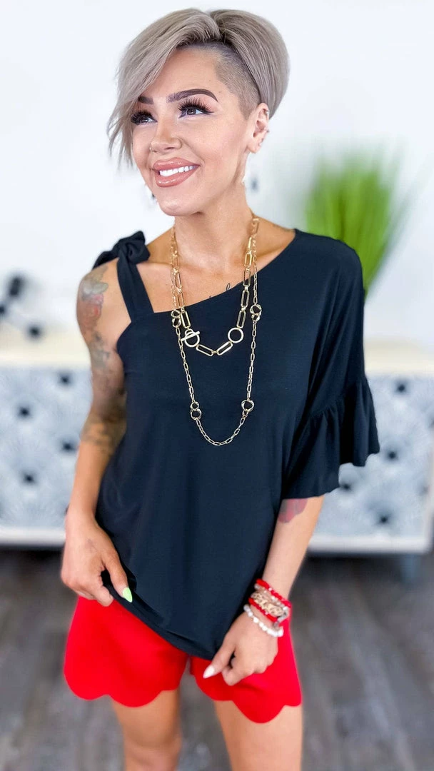 Up your style game with thisΒ Black Sweetest Impression Top. With a flutter sleeve and a one shoulder design with a tied sleeve, this solid top is perfect for a date night or girls’ night out. The ZigZag Stripe’s design is always on point, so you can trust that you’ll be looking good while wearing this top.