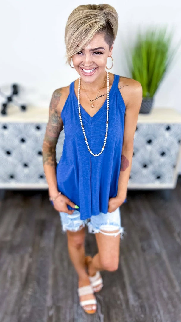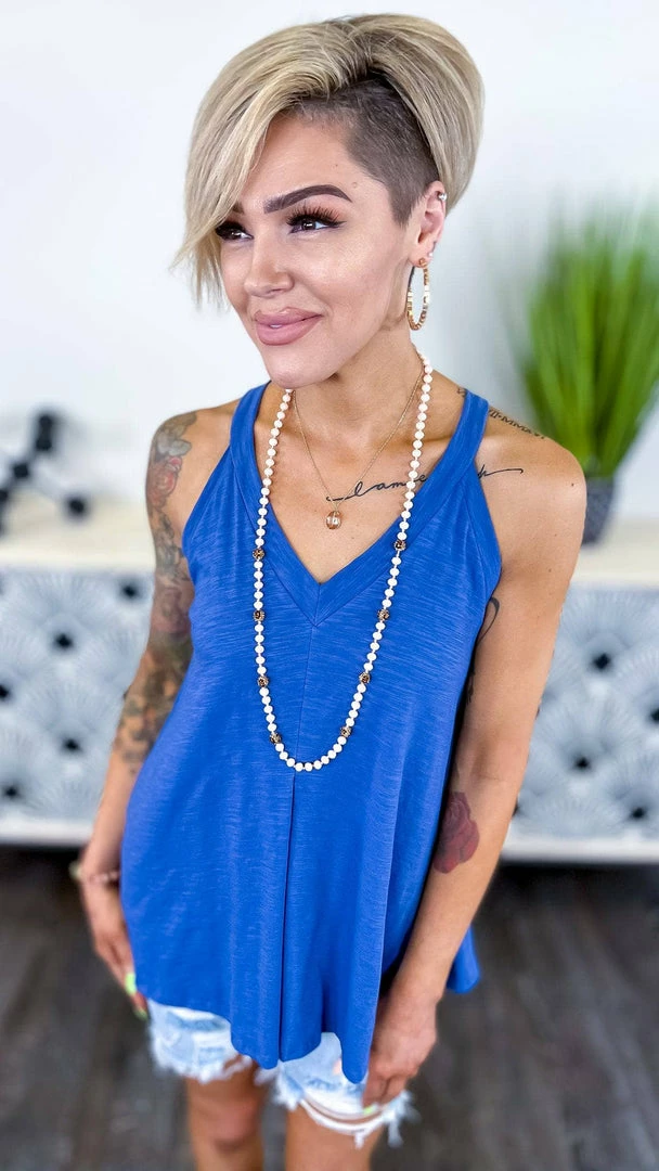 Looking for the perfect go-toΒ blue tank top? The ZigZag Stripe has got you covered with their Blue Lake Gal Tank. This solid blue tank top is perfect for throwing on with a pair of shorts or jeans for a casual outfit. The ZigZag Stripe adds a touch of fun and personality to this basic tank top, making it a great choice for everyday wear.