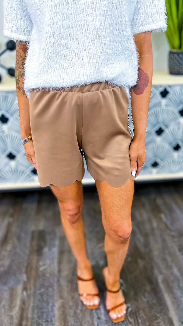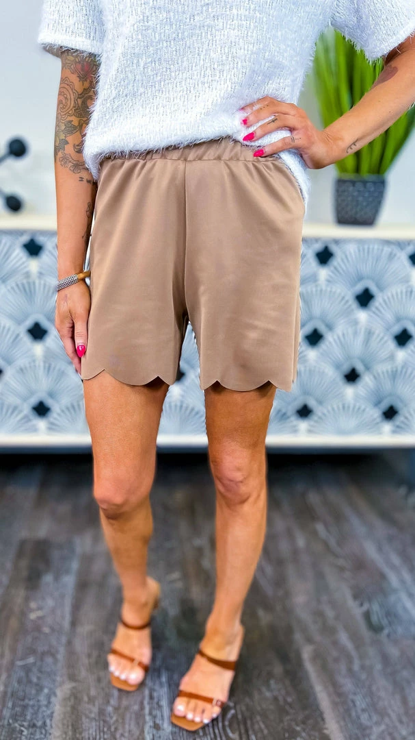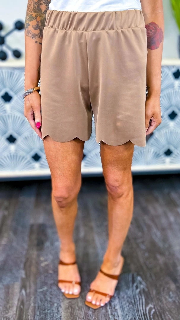 Meet your new favorite pair of shorts. The ZigZag Stripe’s Brown Pretty City Shorts are solid, scallop shorts that will quickly become a staple in your wardrobe. With a scallop hemline, these shorts are flirty and fun. They’re perfect for a day at the park or a night out on the town. You’ll love the way you look and feel in these shorts.