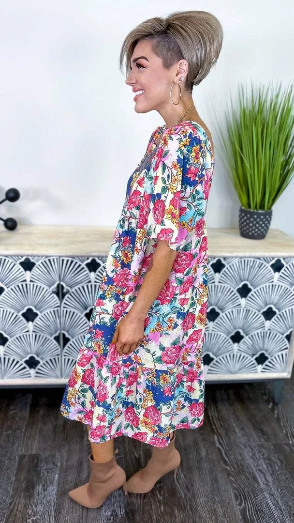 The ZigZag Stripe’s Buy Me Roses Dress features a beautiful floral print in a flattering midi dress silhouette. The perfect dress for any occasion, this dress is sure to turn heads. With a feminine silhouette and pretty details, this dress is a must-have for your wardrobe.