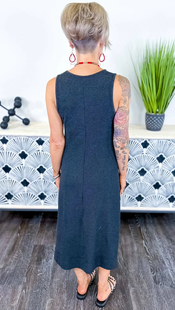 A dress that was made by us for you and is sure to be an undeniable piece to add to your wardrobe this season! The midi length of this dress is perfect to show off a cute pair of shoes. Get creative and layer all your favorite outwear with it too!