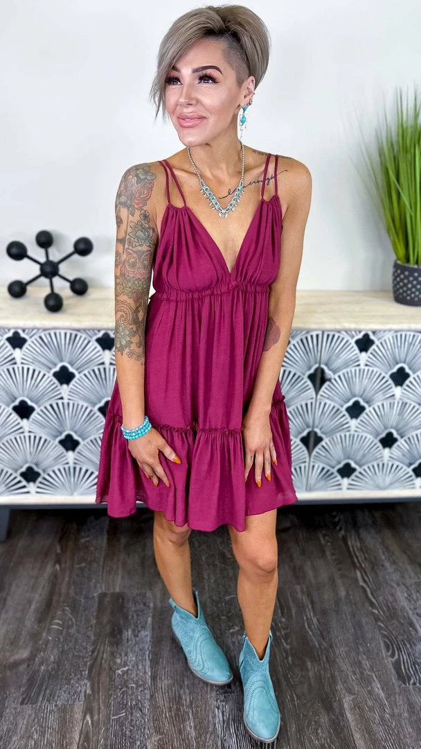 The perfect dress for any evening occasion, this Cocktails at Sunset Dress from The ZigZag Stripe will have you feeling your best. With a tiered design and spaghetti straps, this v-neck dress flatters any figure. This dress was made by US for YOU, so you can be sure to feel comfortable and stylish all night long.