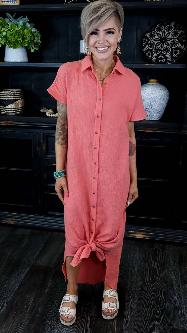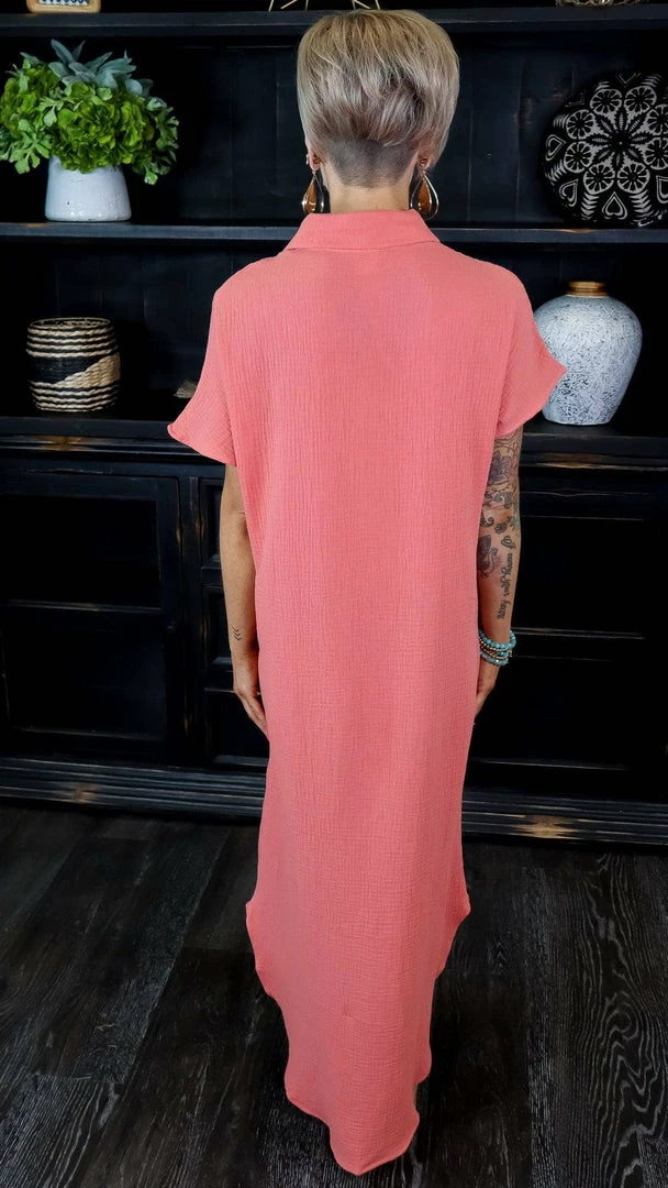 Create new fashion habits in this ZZS exclusive we can’t help but rave about! This airy button-down midi dress is going to be perfect for timeΒ relaxing by the beach or working in the office!Β