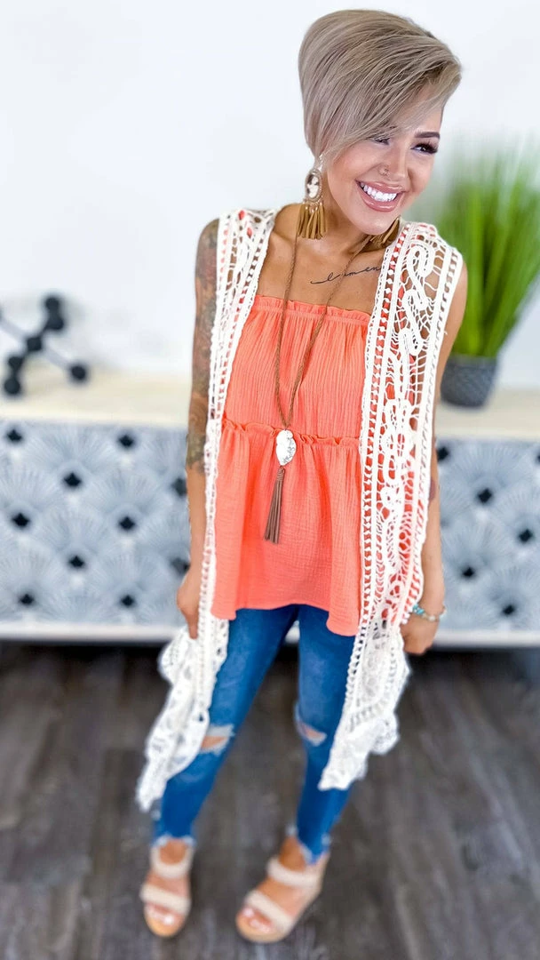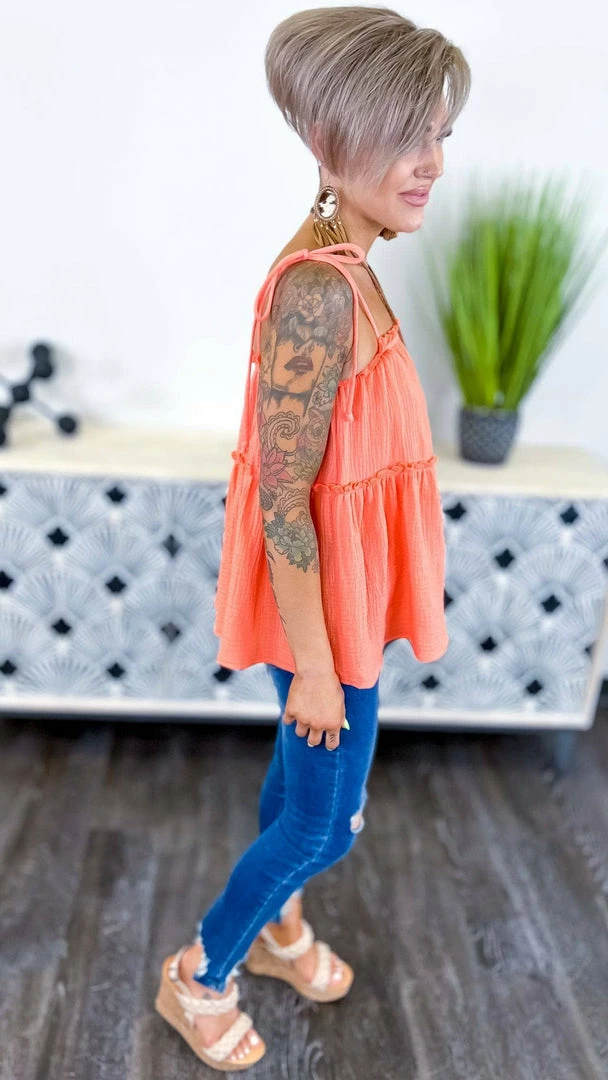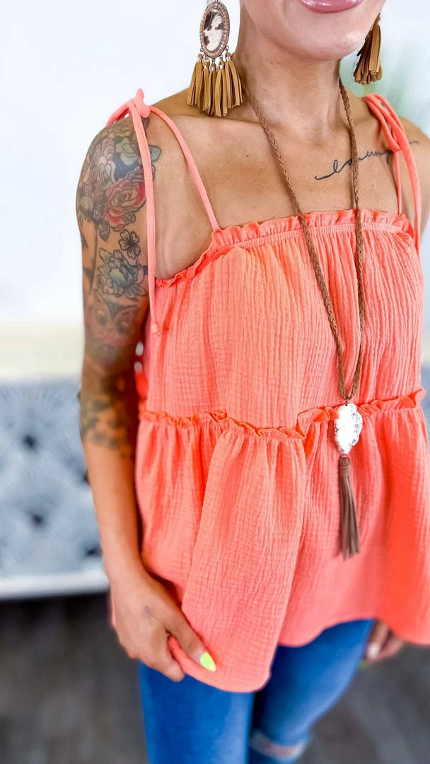 You’re in for a bright day. This sunny tank is perfect for days when you want to feel the breeze on your skin. With its tiered design, this top flows with you wherever you go. Wear it with your favorite pair of cut-offs and sandals for a look that will take you from the beach to the boardwalk.